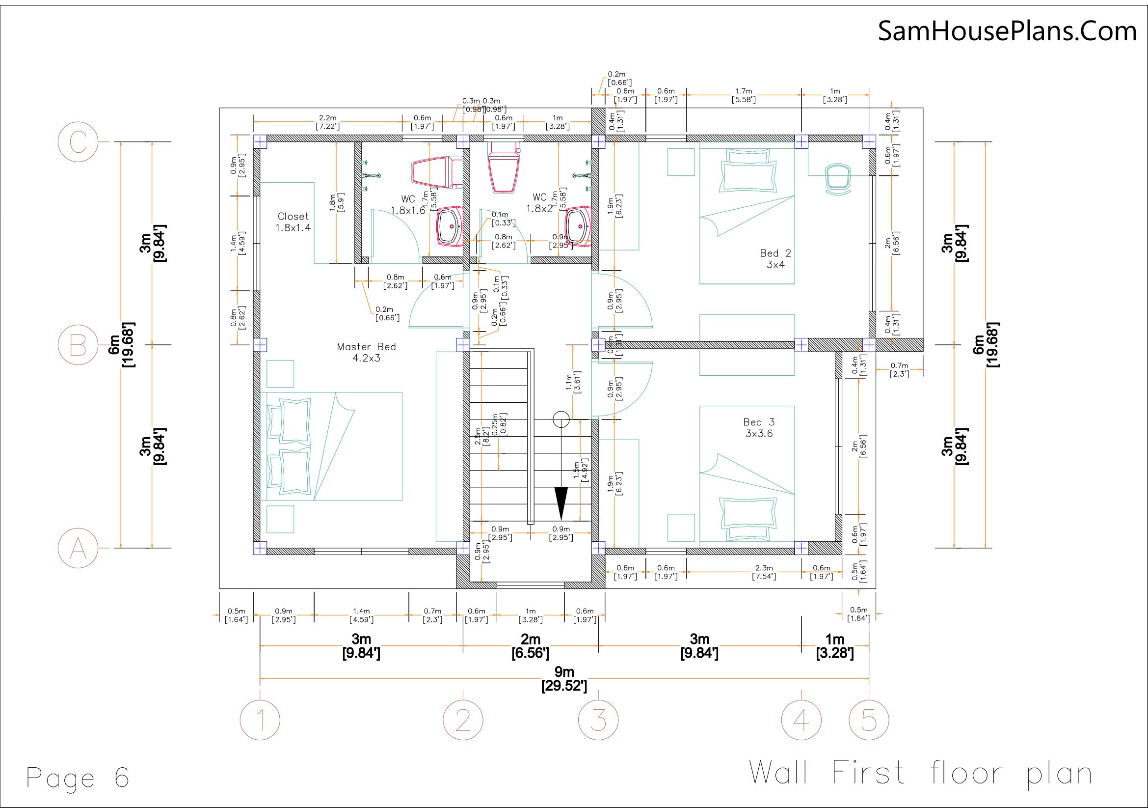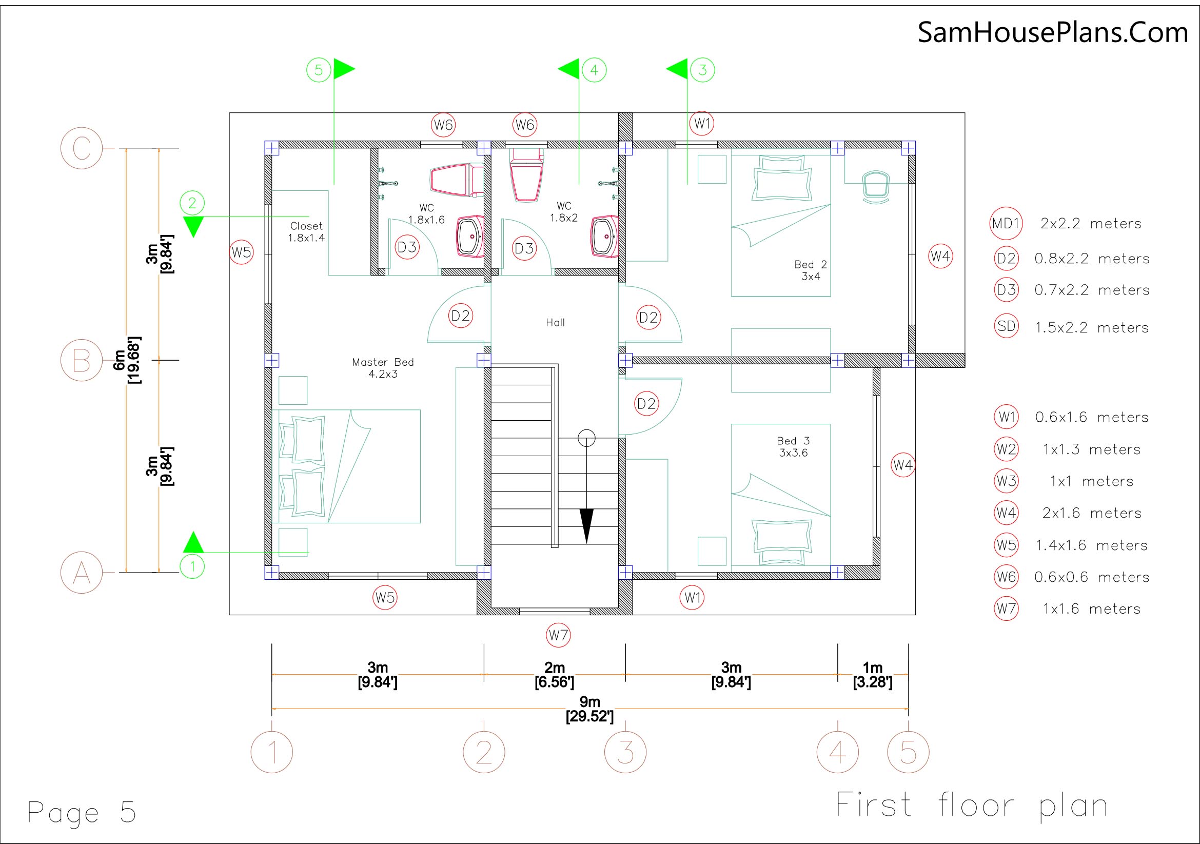 Small House Plans 5×7 Meters 2 Bedrooms