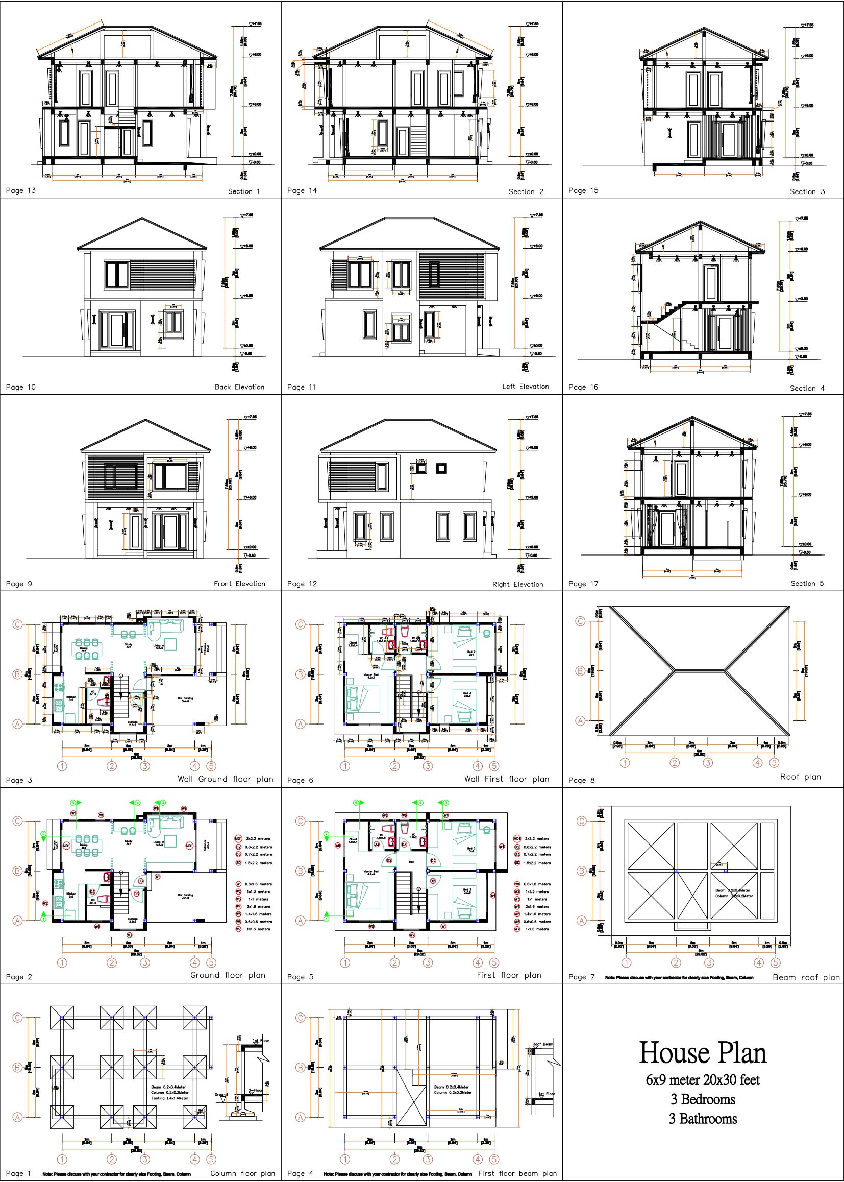 20×30 Small House Design 6×9 Meter 3 Beds PDF Plans. This house is perfect for small land size.