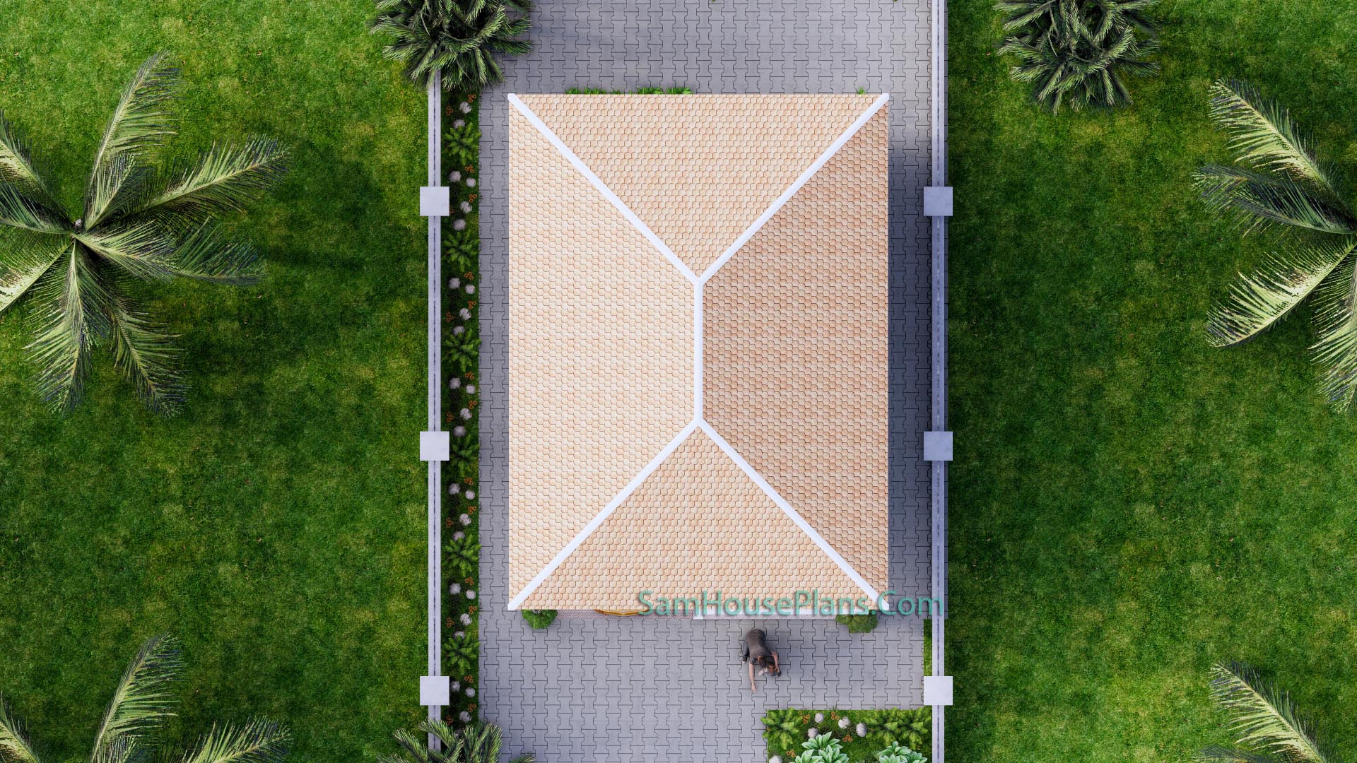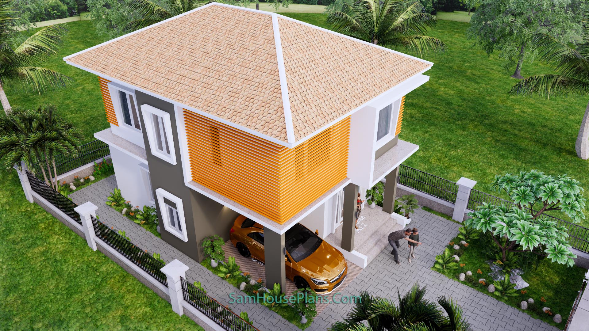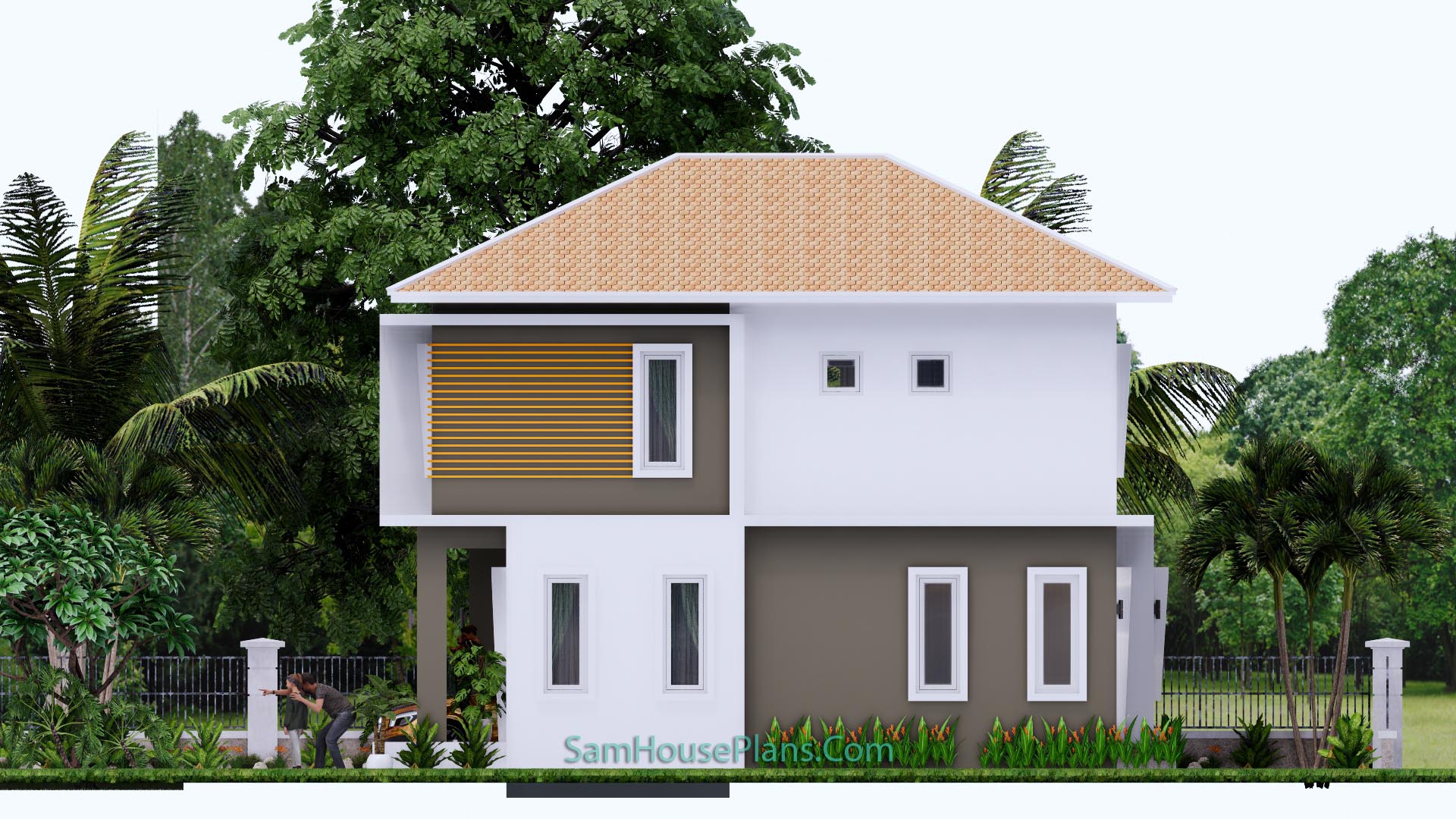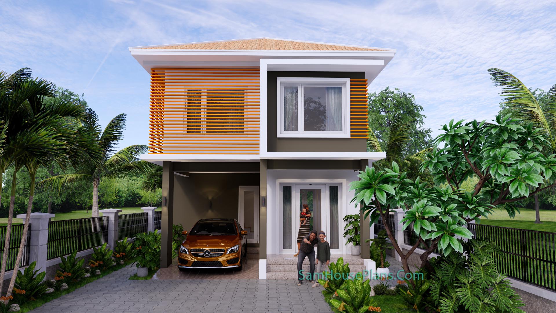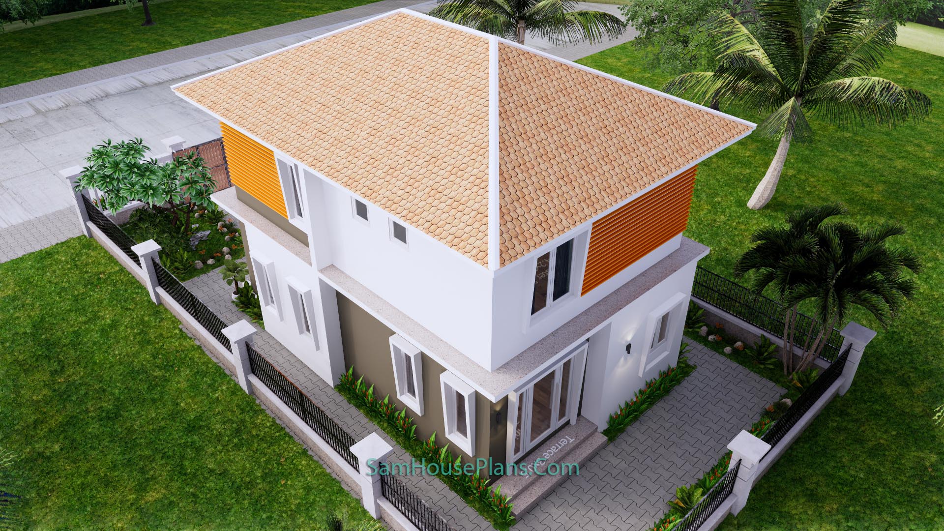 Finally, The Hip roof type is made from zine roof tiles that cover above Gypsum board ceiling . It is make the house look simple and modern.