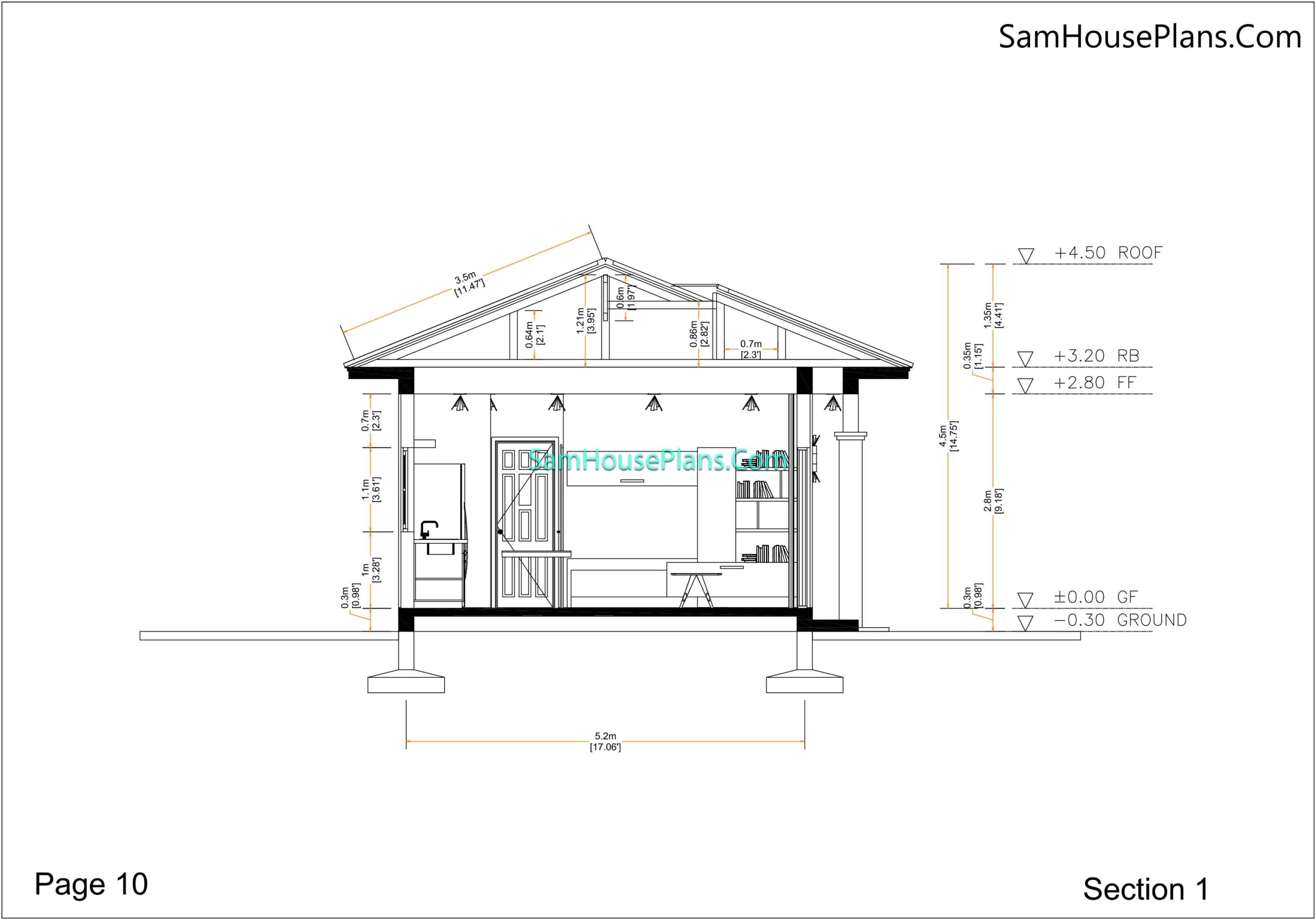 23×19 Small House Design One Bed PDF Full Plans Hip Roof. This is the best house for single family.
