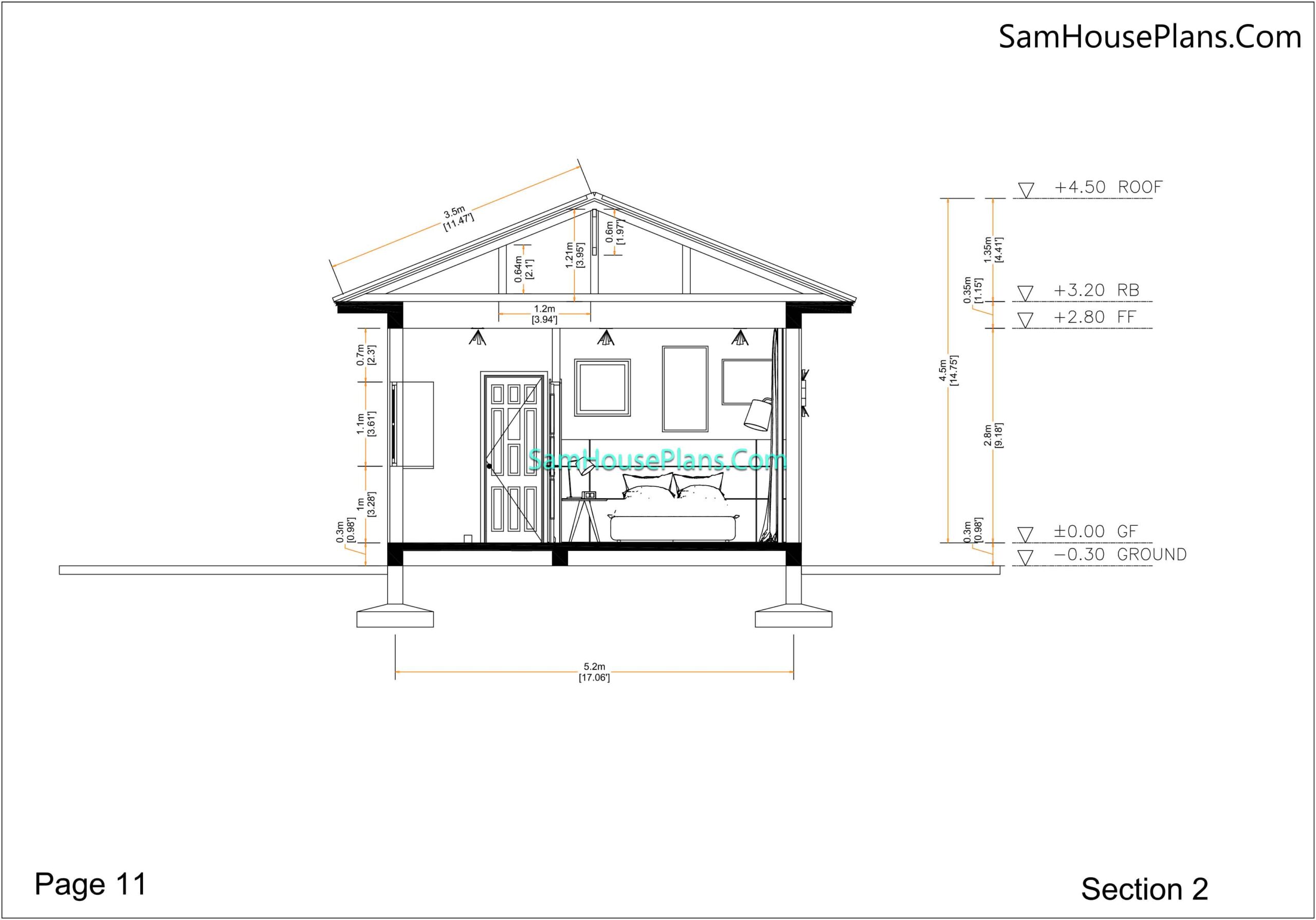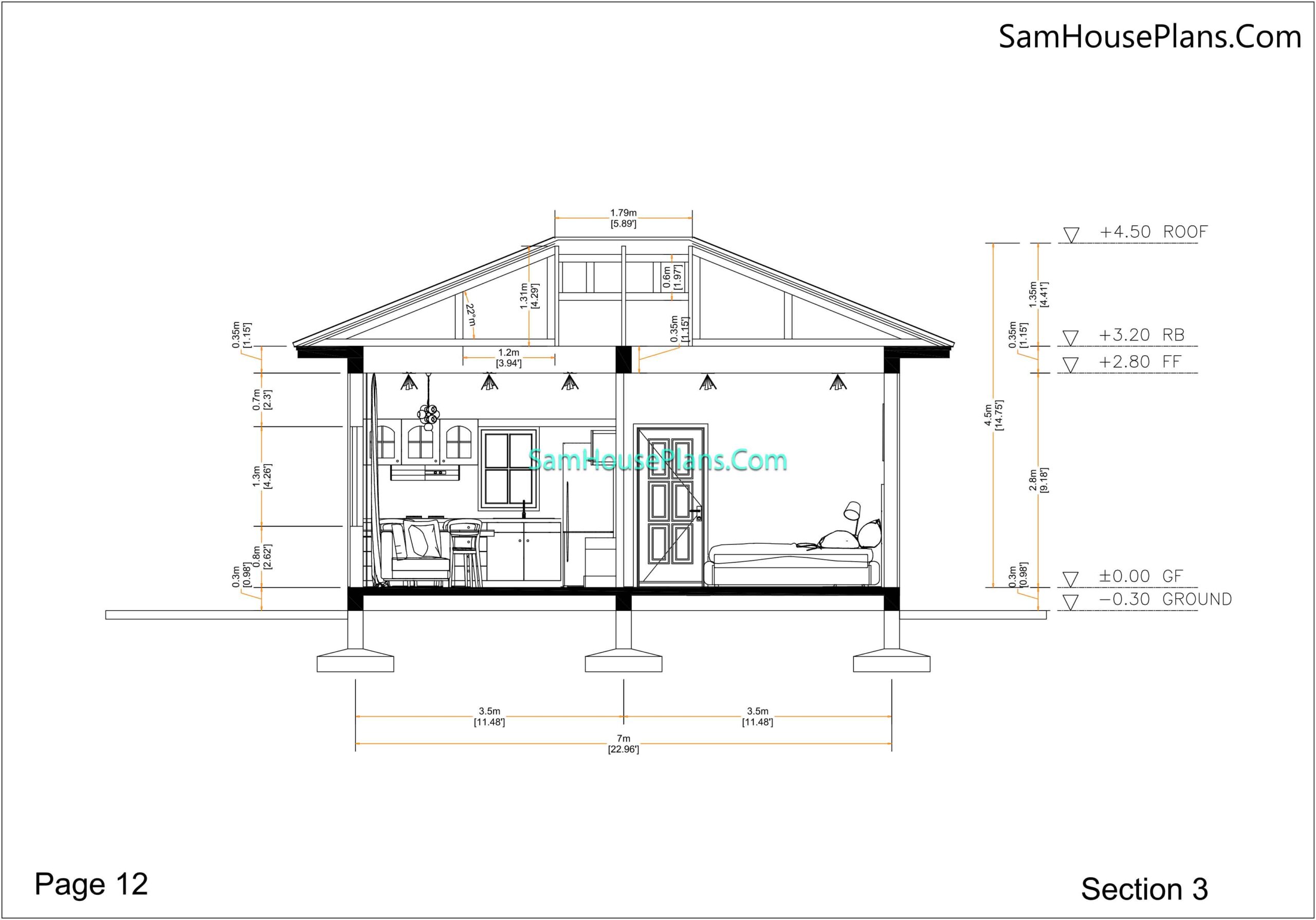 Small House Design 7×7 Meter 23×23 Feet Gable Roof