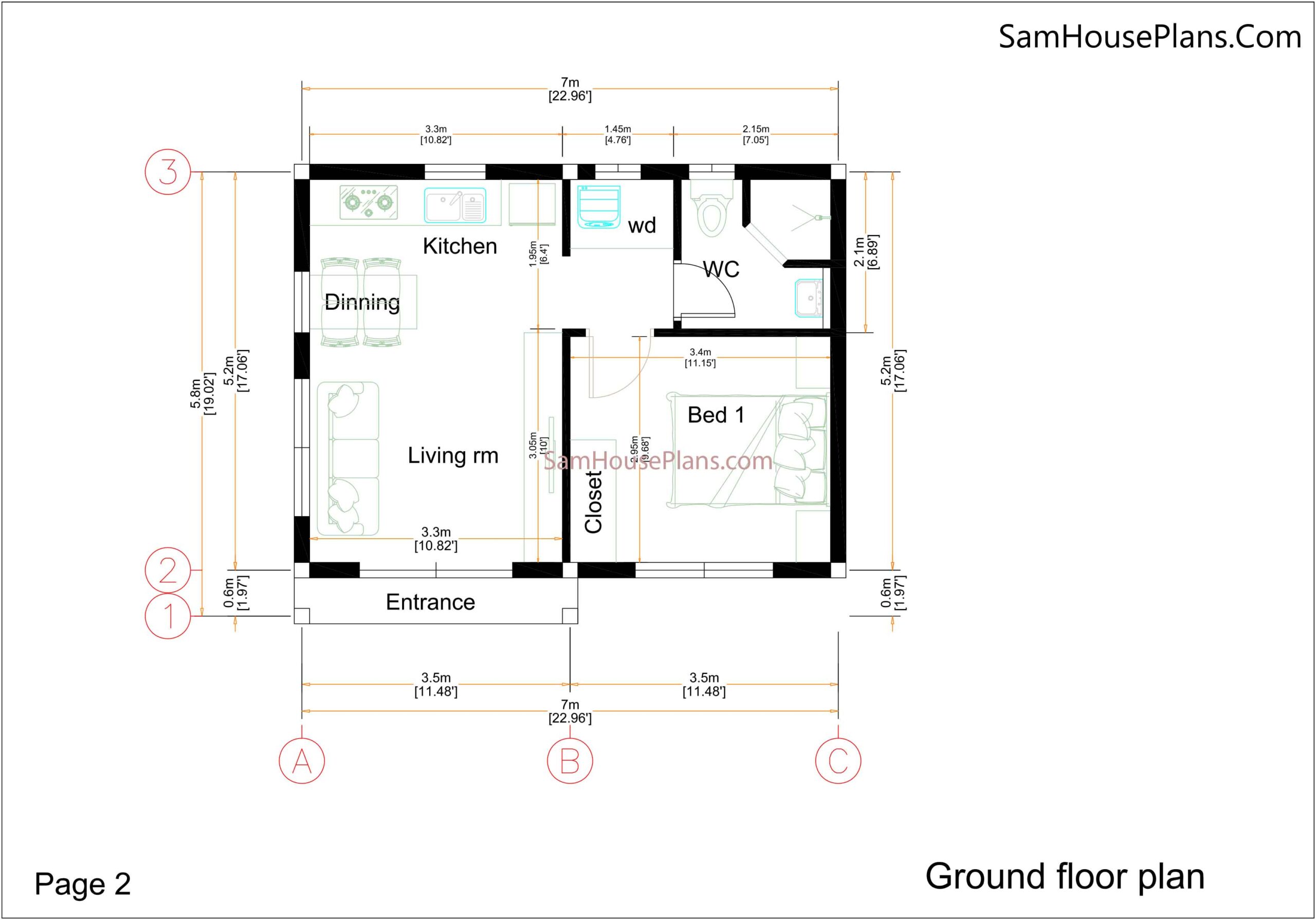 23×19 Small House Plan 7x6m PDF Full Plans Shed Roof. This is the best house for single family.