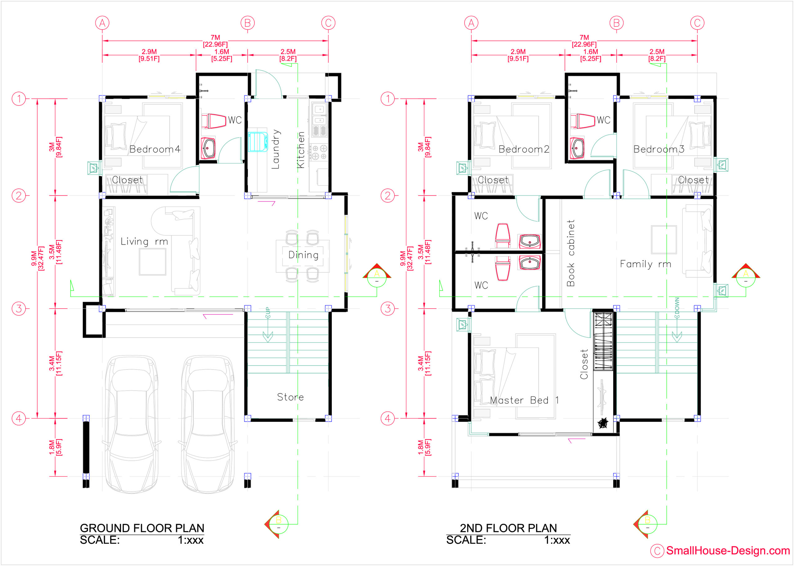 Small House Plans 5×7 Meters 2 Bedrooms