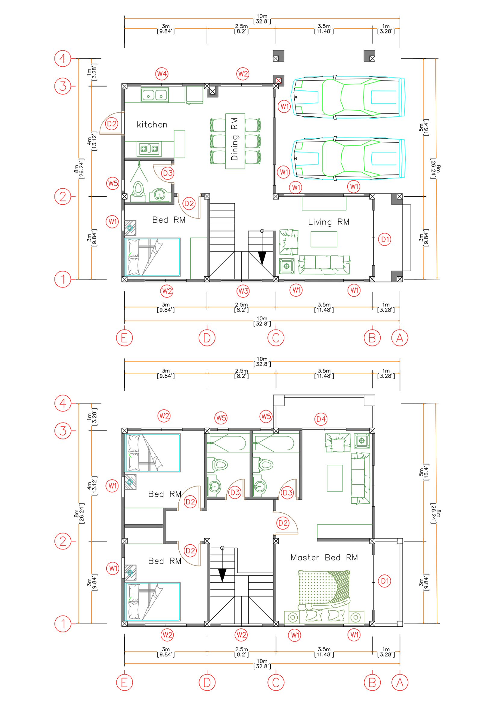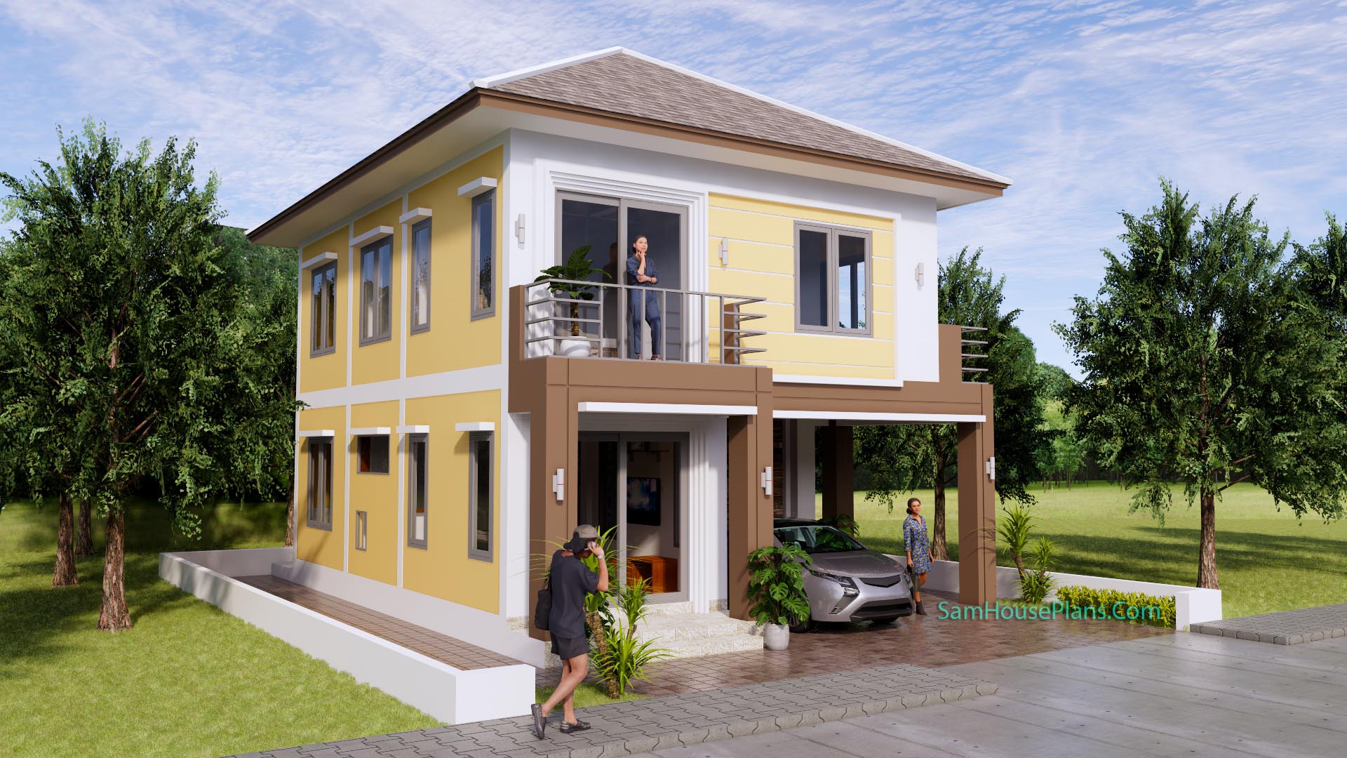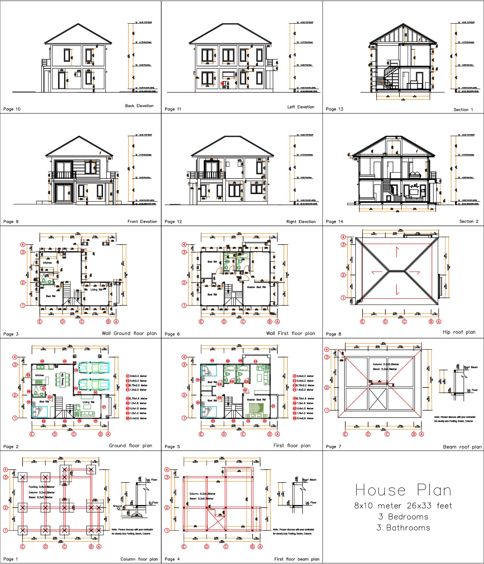 26×33 Feet House Design Plan 8×10 Meter 3 Beds 3 Baths Hip Roof PDF Plan. This villa is modeling by SAM-ARCHITECT With Two stories level. It’s has 3 bedrooms.