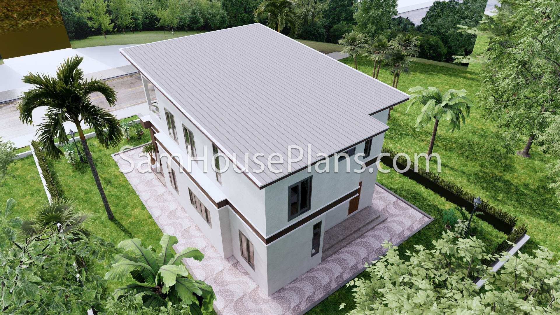 Finally, The Hip roof type is made from Cement roof tiles that cover above Gypsum board ceiling . It is make the house look simple and modern.