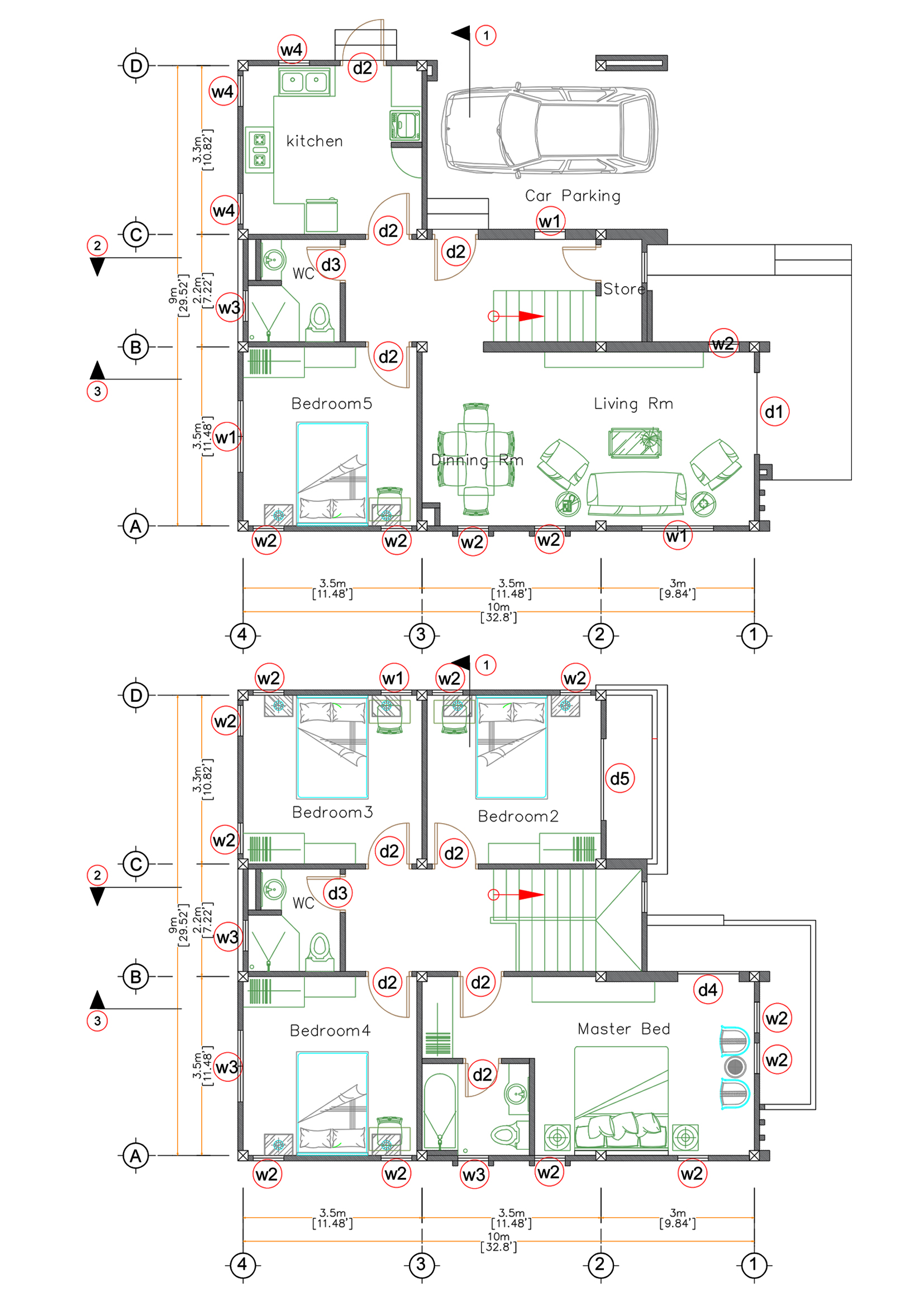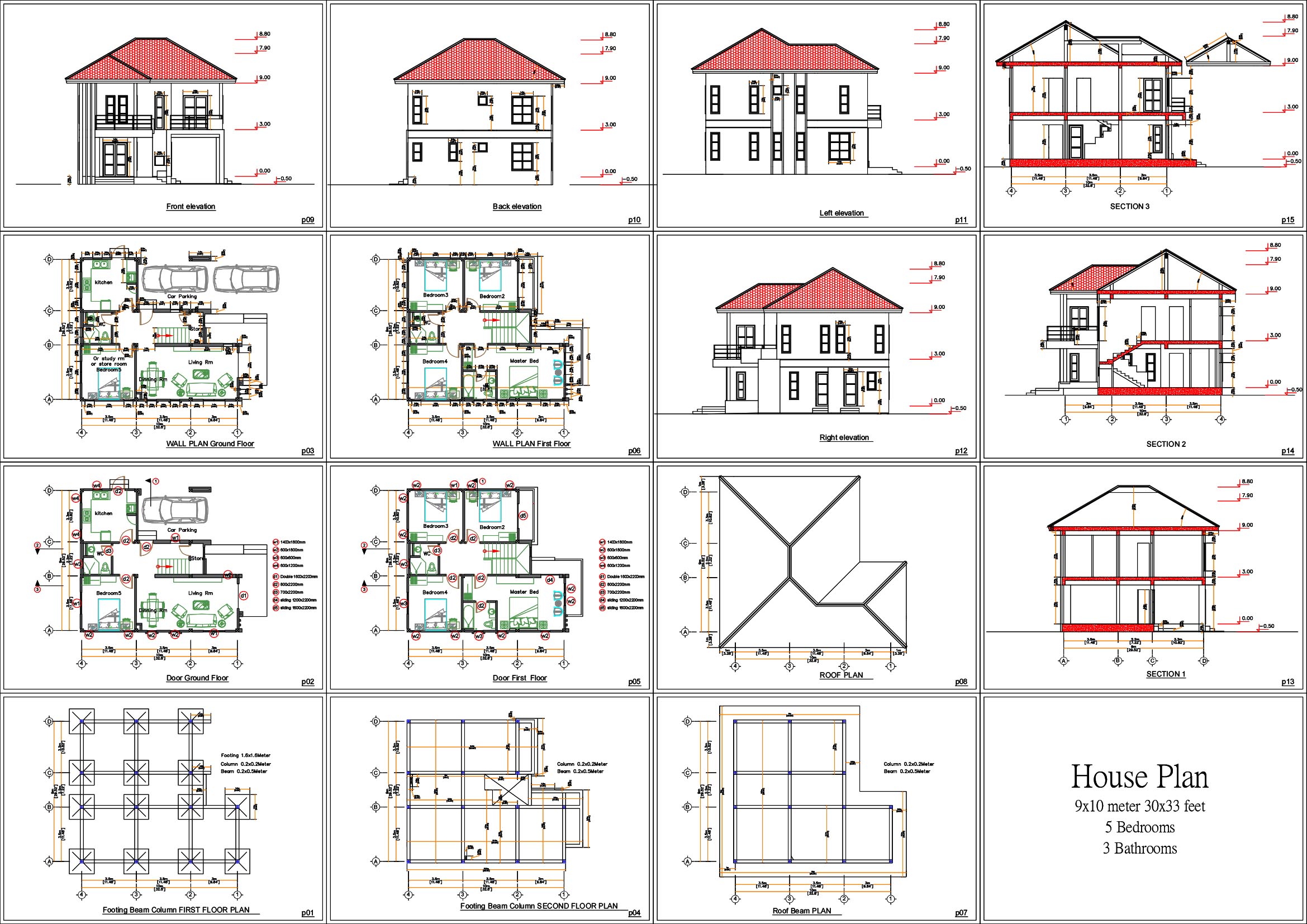 Custom House Plan 9×10 Meter 30×33 Feet 5 Beds 3 Baths Hip Roof PDF Plan