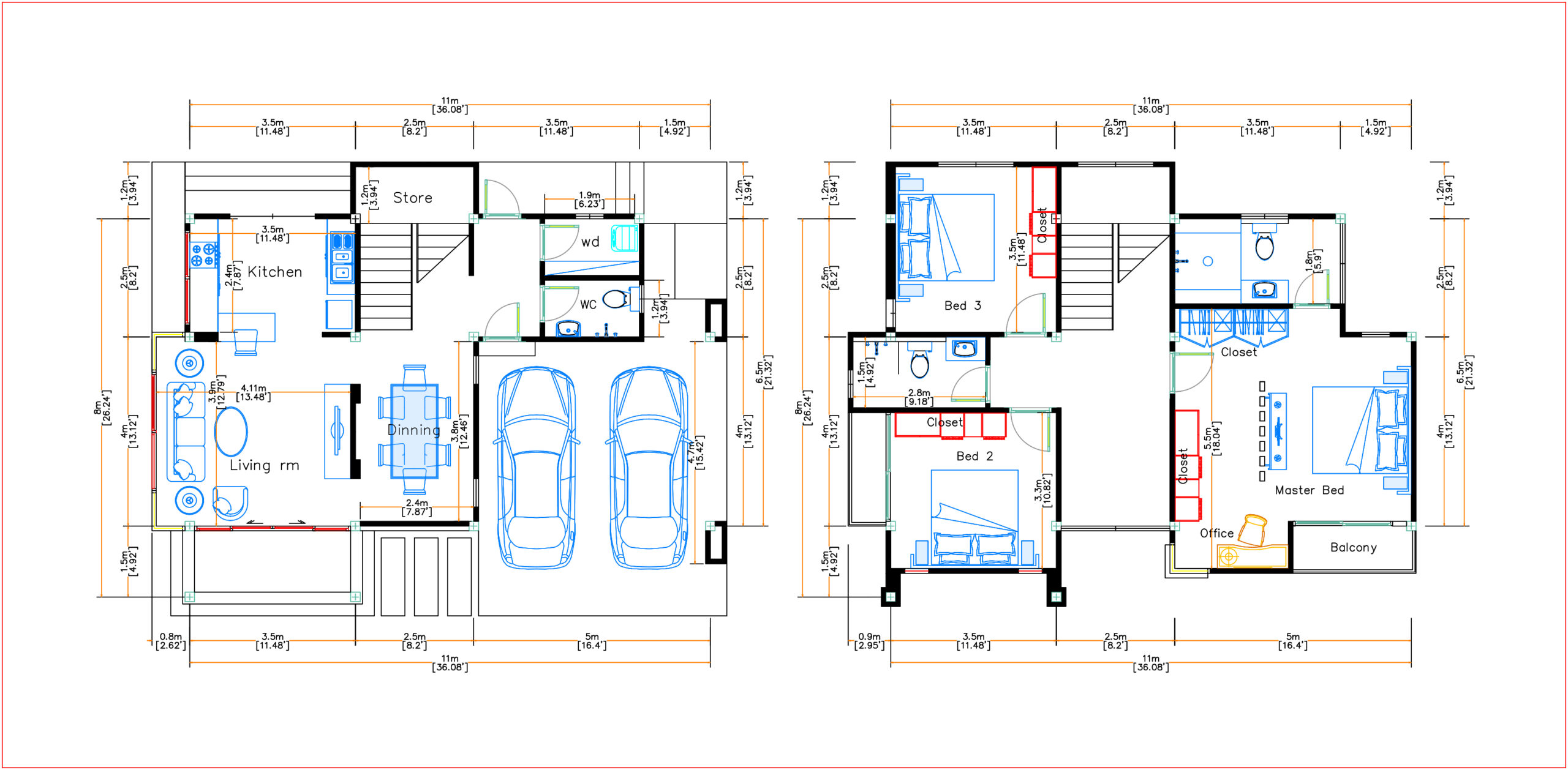 Home Plans 11×8 Meter 36×26 Feet 3 Beds