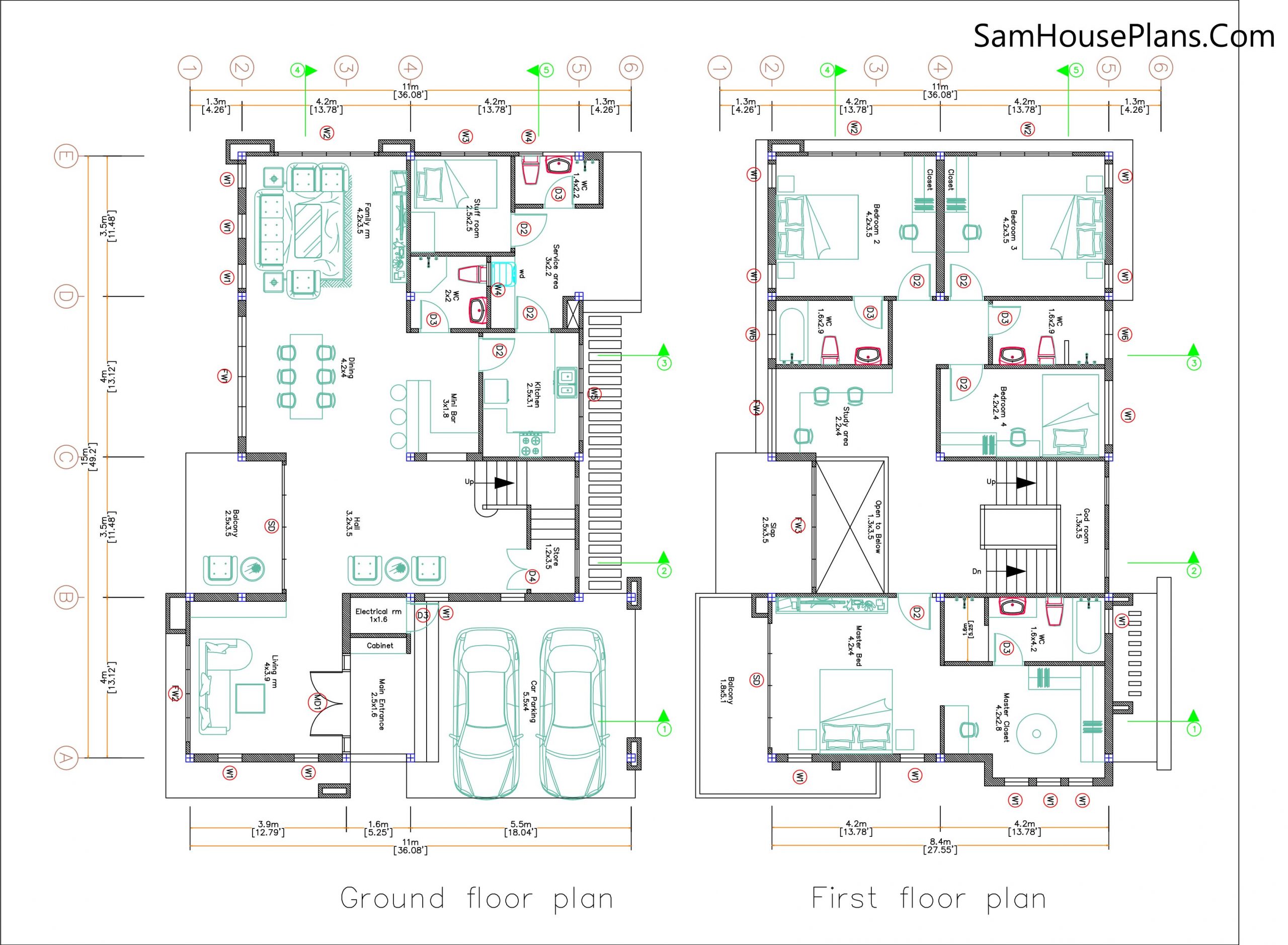 House Design Plan 11×15 Meter 5 Bedrooms 36×49 Feet 3d PDF Full Plans. This house is perfect for medium land size 15×20 Meter.
