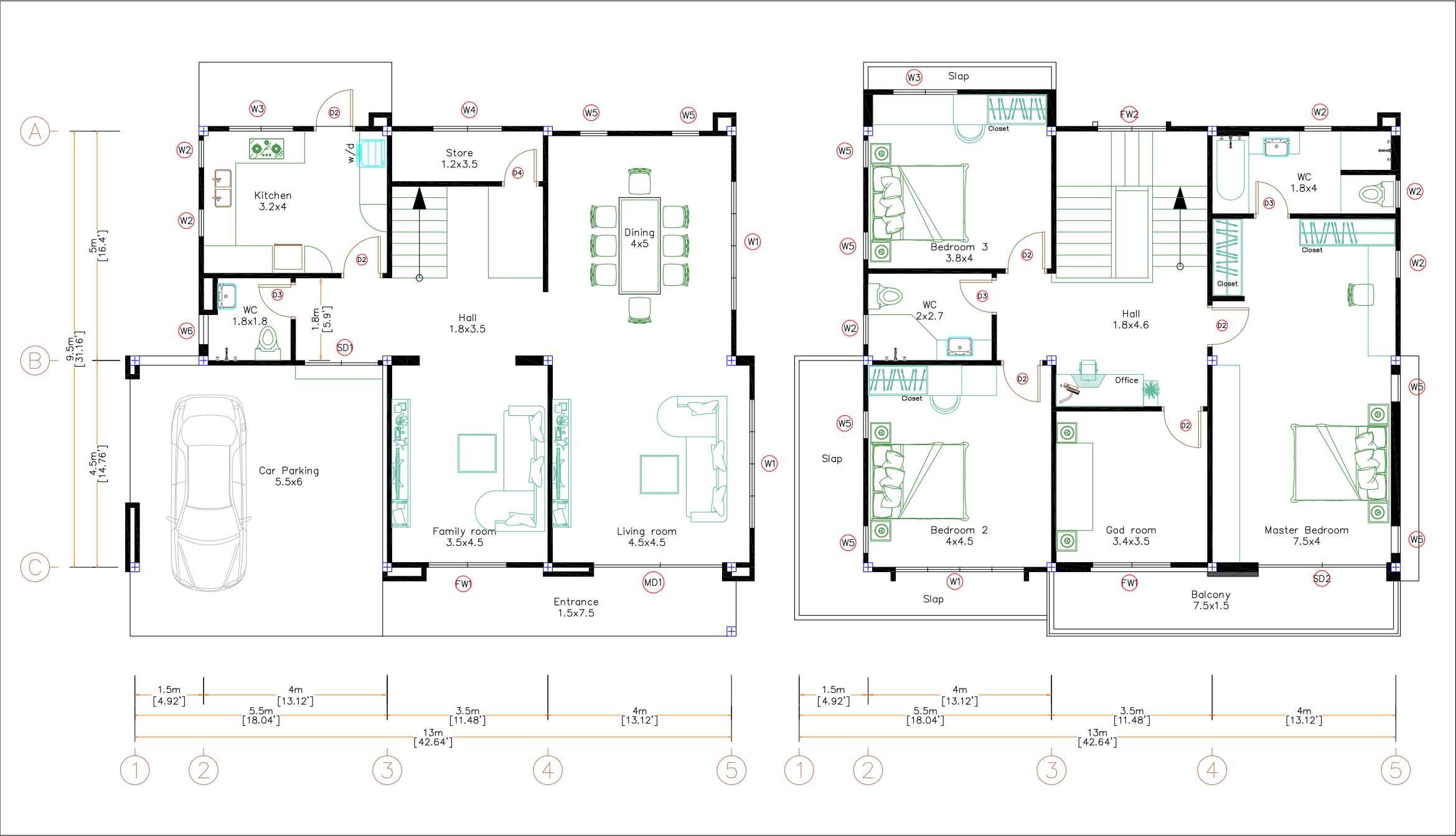 Firstly, Ground floor, Parking is at the left side of the house 5.5×6 meter. A nice Terrace entrance in front of the house size 1.5×7.5 meters. When we are going from the entrance, a Living 4.5×4.5 meters is very perfect for this house it is nice and modern. Brightly Dining room 4×5 meters, Kitchen area 3.2×4 meter, it is clean and beautiful. Bathroom 1.8×1.8 meter. Washing area is in the kitchen. Back balcony 1.5×4 Meter. Store is under the stair 1.2×3.5 meter.