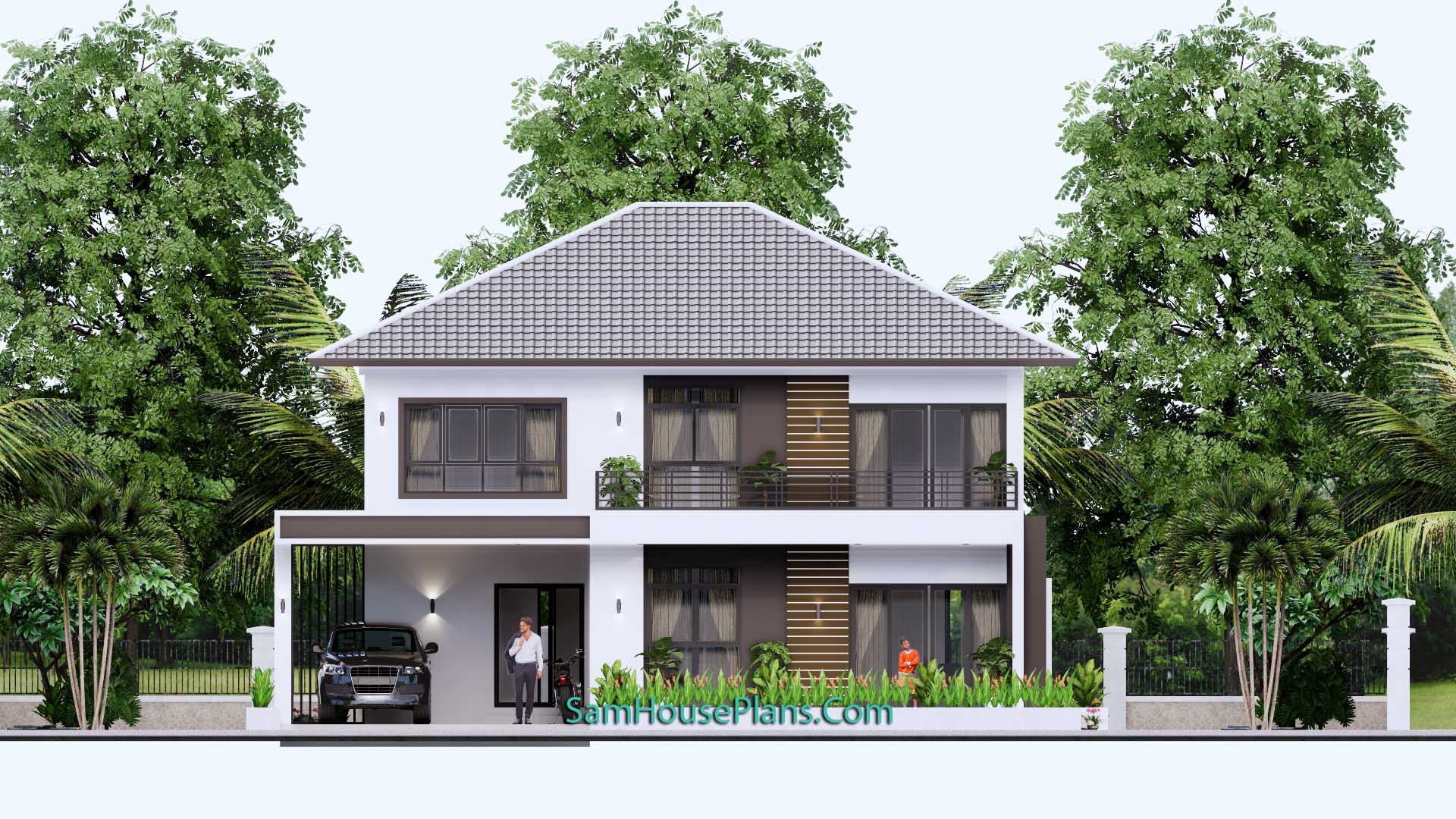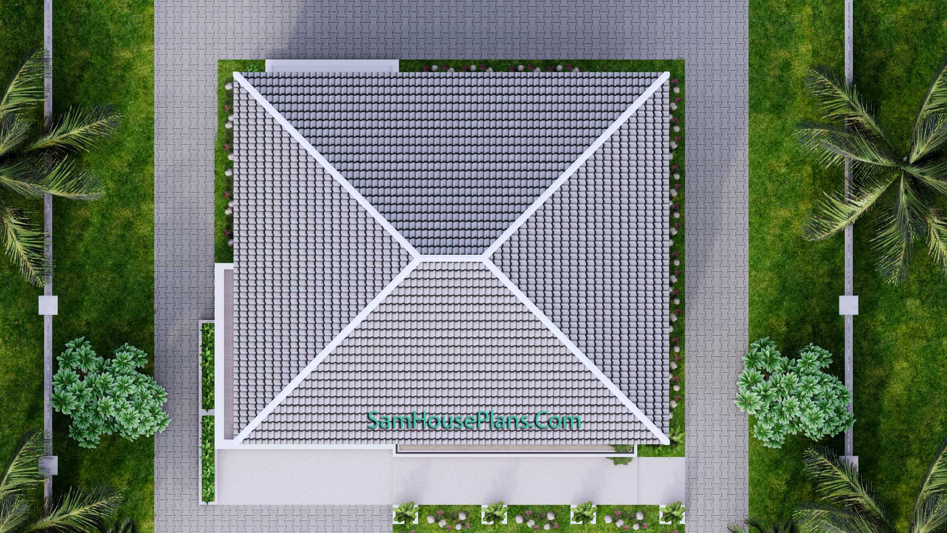 Finally, The Hip roof type is made from Cement roof tiles that cover above Gypsum board ceiling . It is make the house look simple and modern.