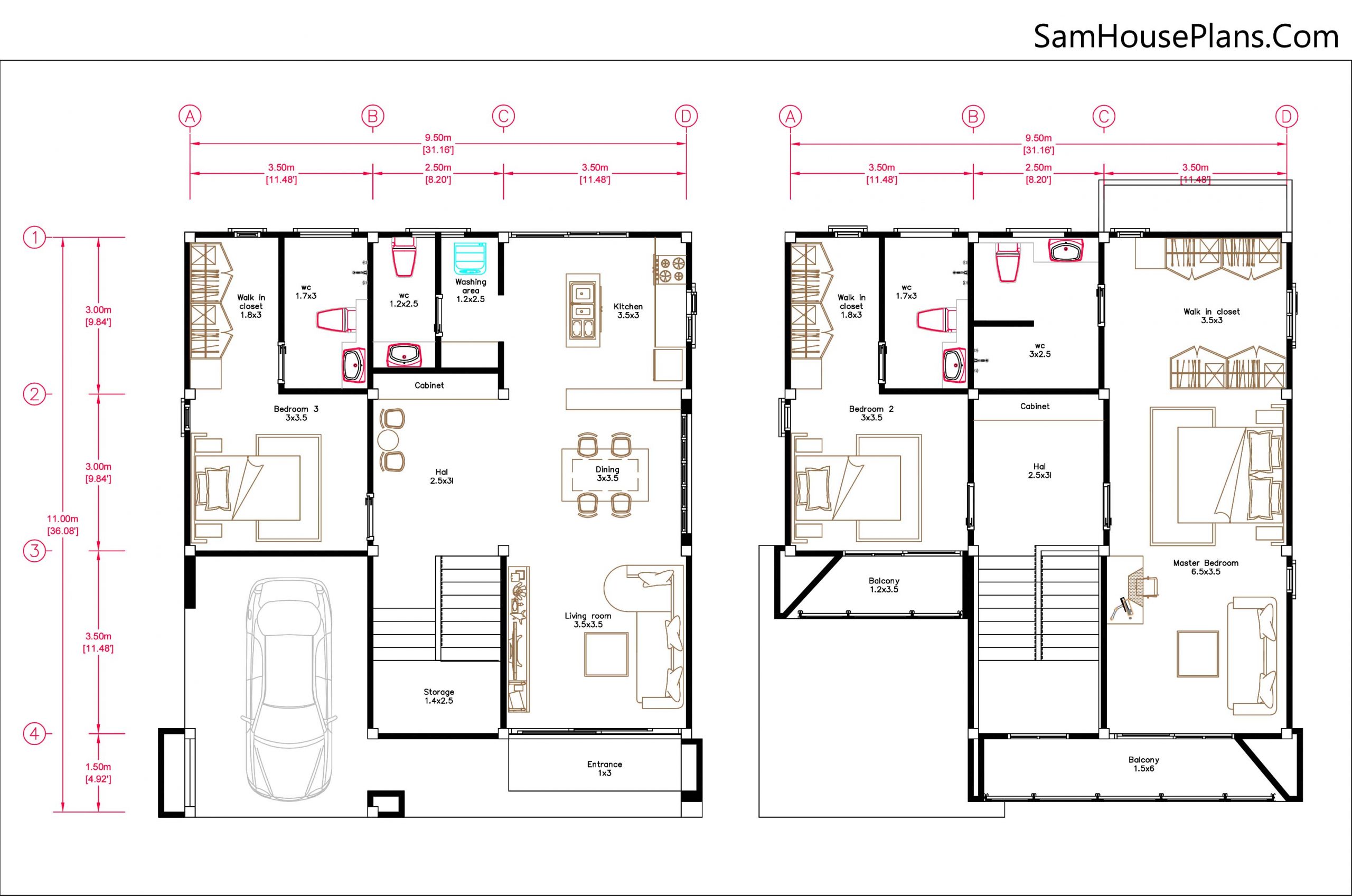 House Design Plan 9.5×11 M with 3 Bedrooms PDF Full Plans 31×36 Feet. If you are looking for 3 bedrooms house for your small family this house is perfect House plan for you.