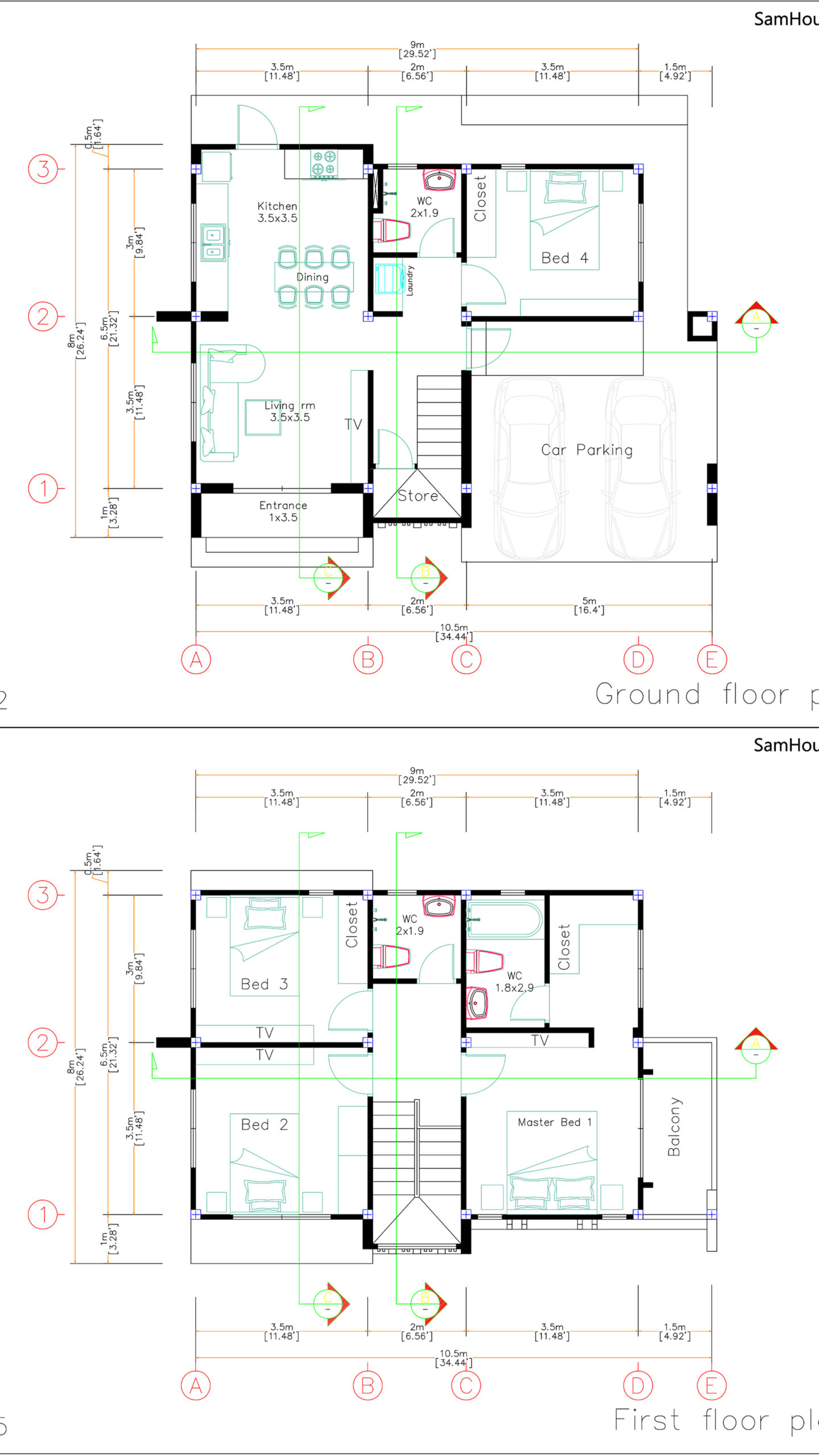 Small House Plans 5×7 Meters 2 Bedrooms