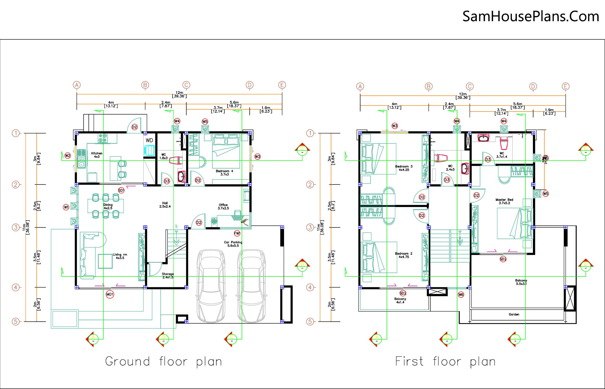 House design plans 12×11 M with 4 Bedrooms 40×36 Feet 3d PDF Full Plans. This house is perfect for medium land size 15×20 Meter.