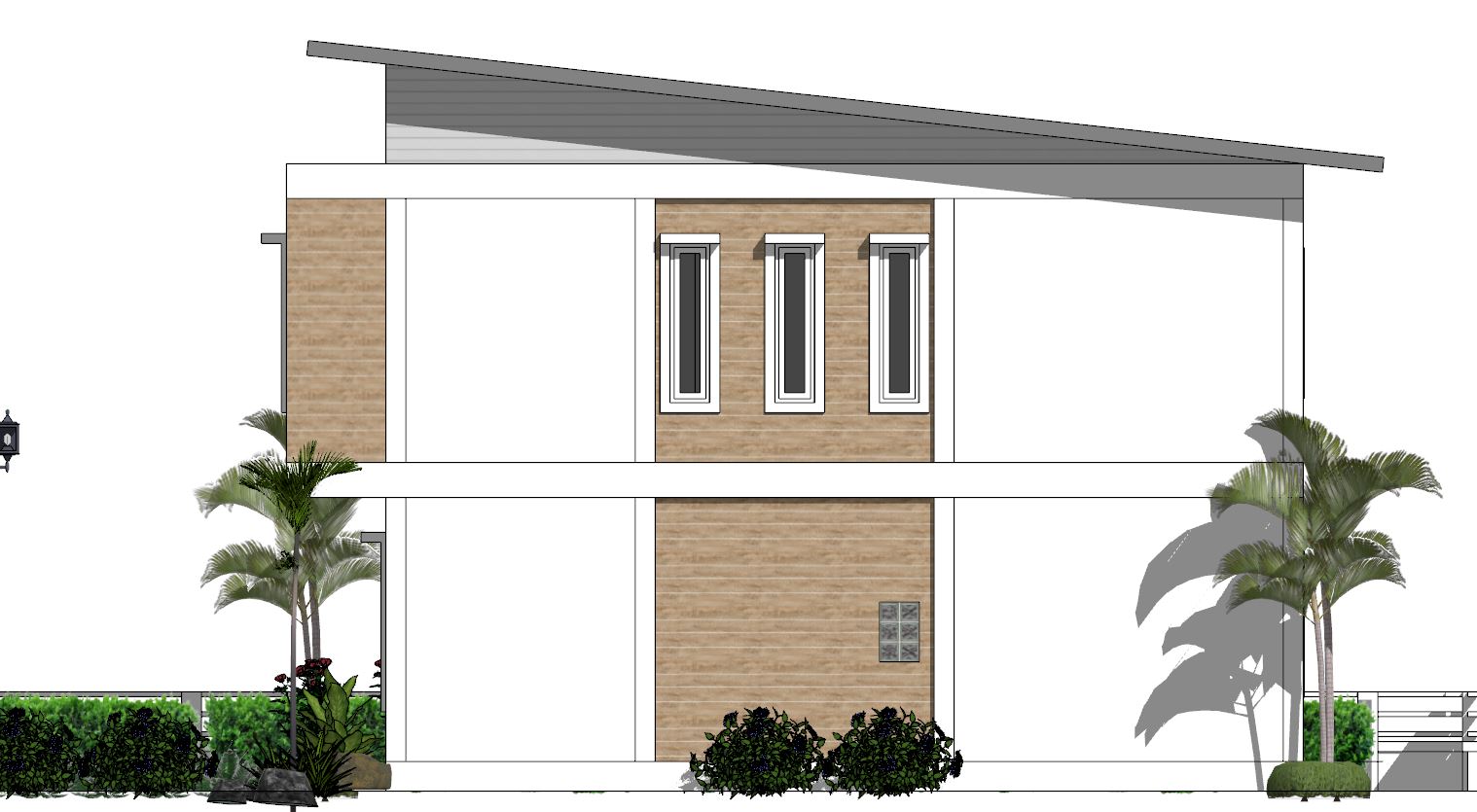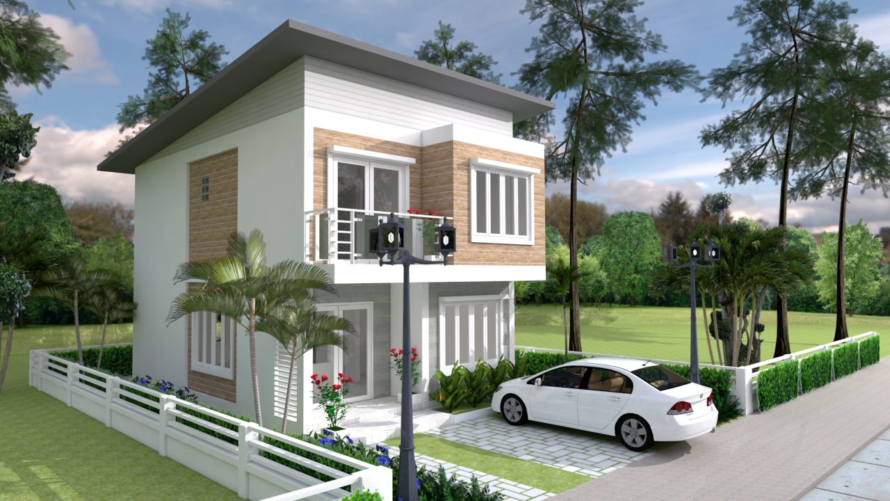 Finally, The Shed roof type is made from Cement roof tiles that cover above Gypsum board ceiling . It is make the house look simple and modern.
