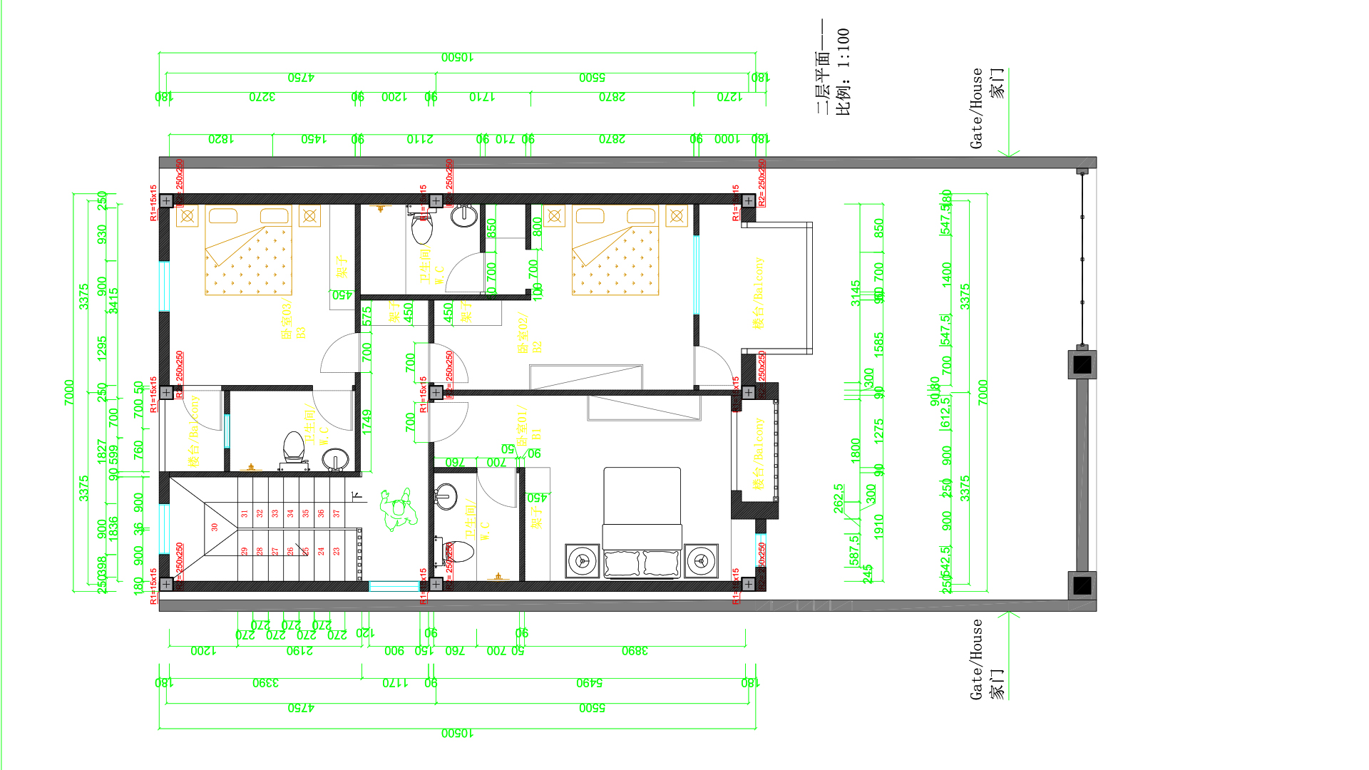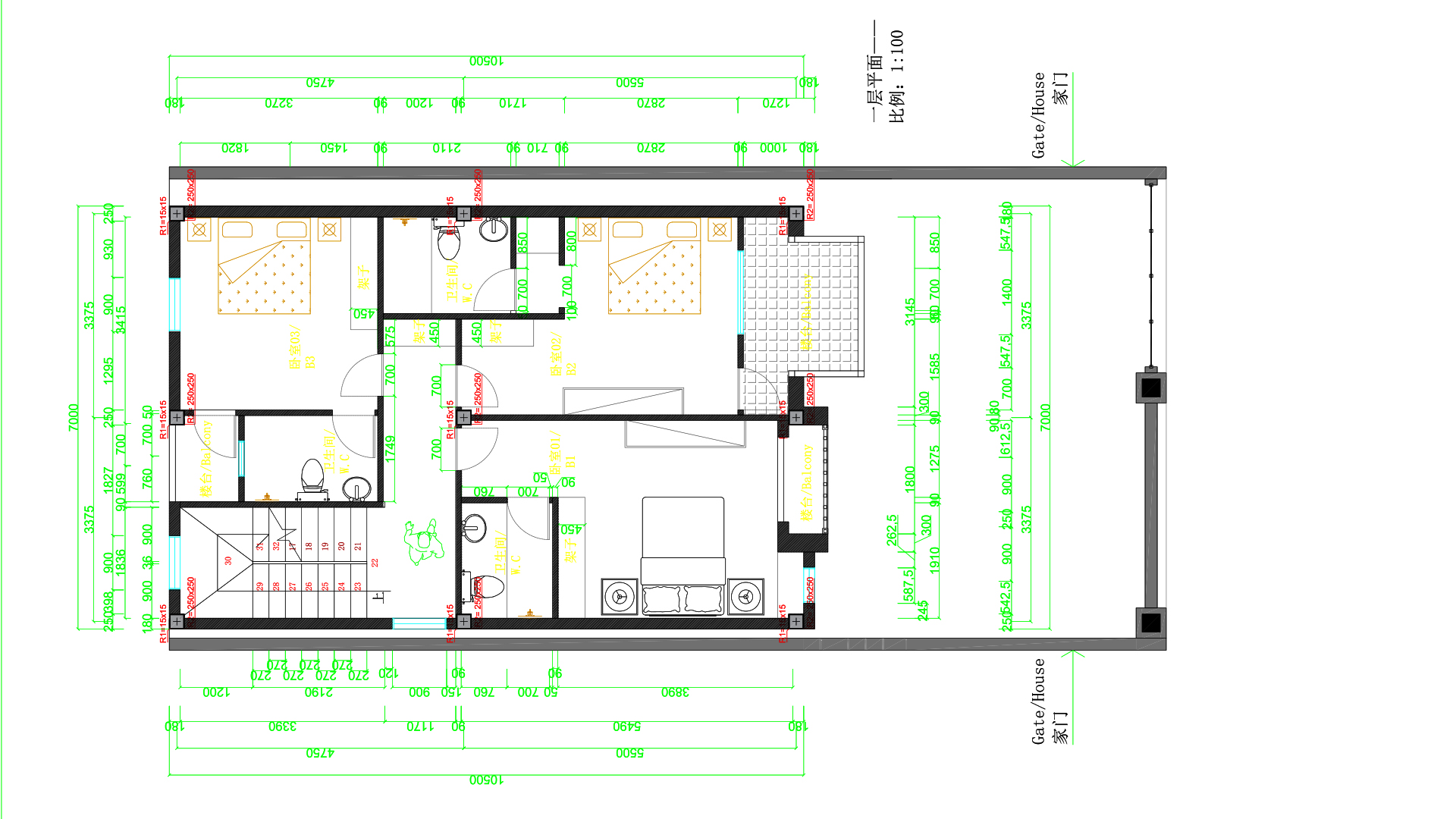 Finally, at first floor: the Master Bedroom size is 6.5×3.5 meters attached with bathroom 3×2.5 meters, it also has a big glass door to balcony 1.5×6 meter with a queen size bed, Makeup desk and walk in closet 3.5×3 meter. Bedroom 2 size 3×3.5 meter with bathroom 1.7×3 meter and balcony 1.2×3.5 meter, walk in closet 1.8×3 meters. Hall area 2.5×3 meter.