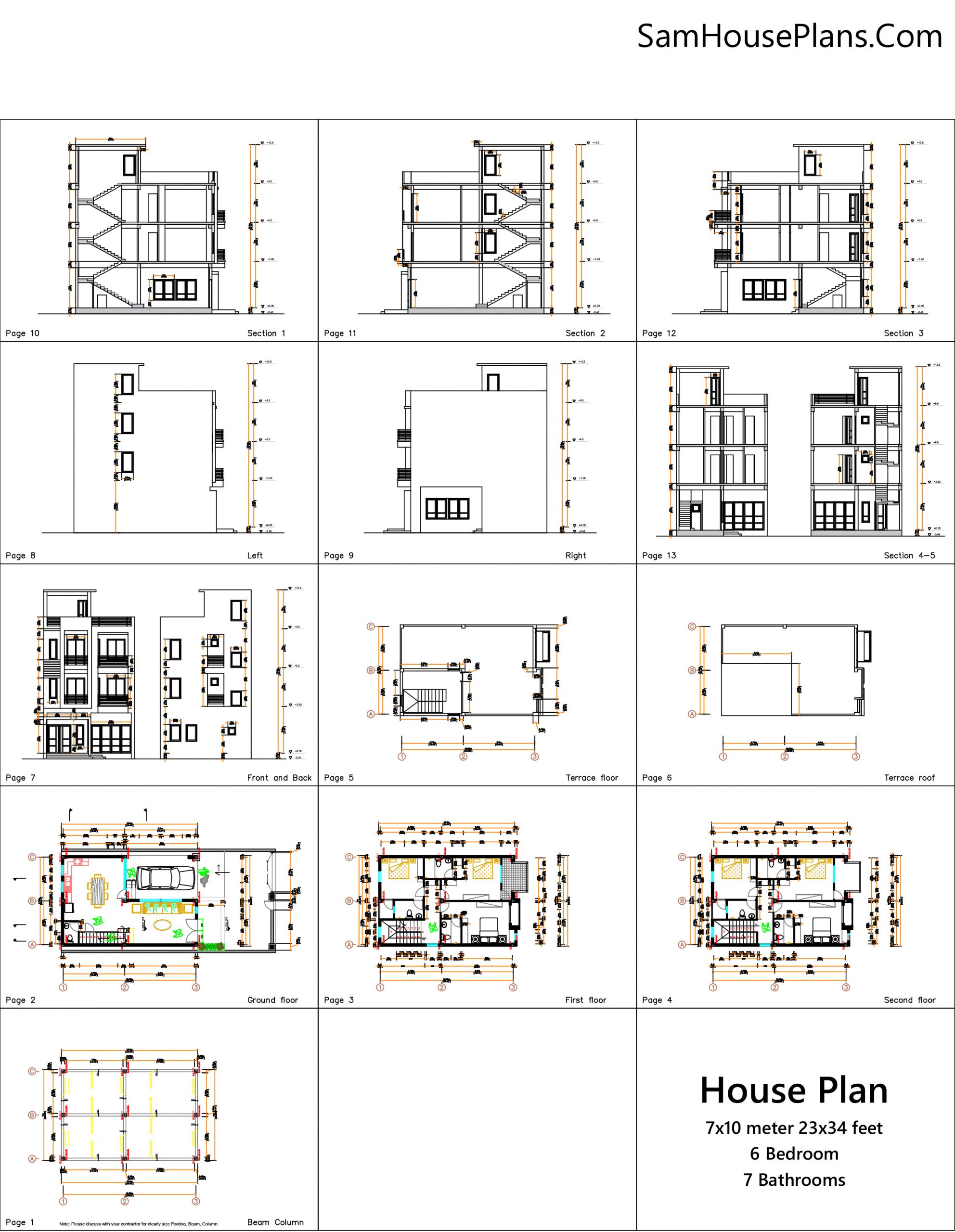 House Plans 7x10m with 6 Bedrooms. This villa is modeling by SAM-ARCHITECT With Three stories level. It’s has 6 bedrooms.
