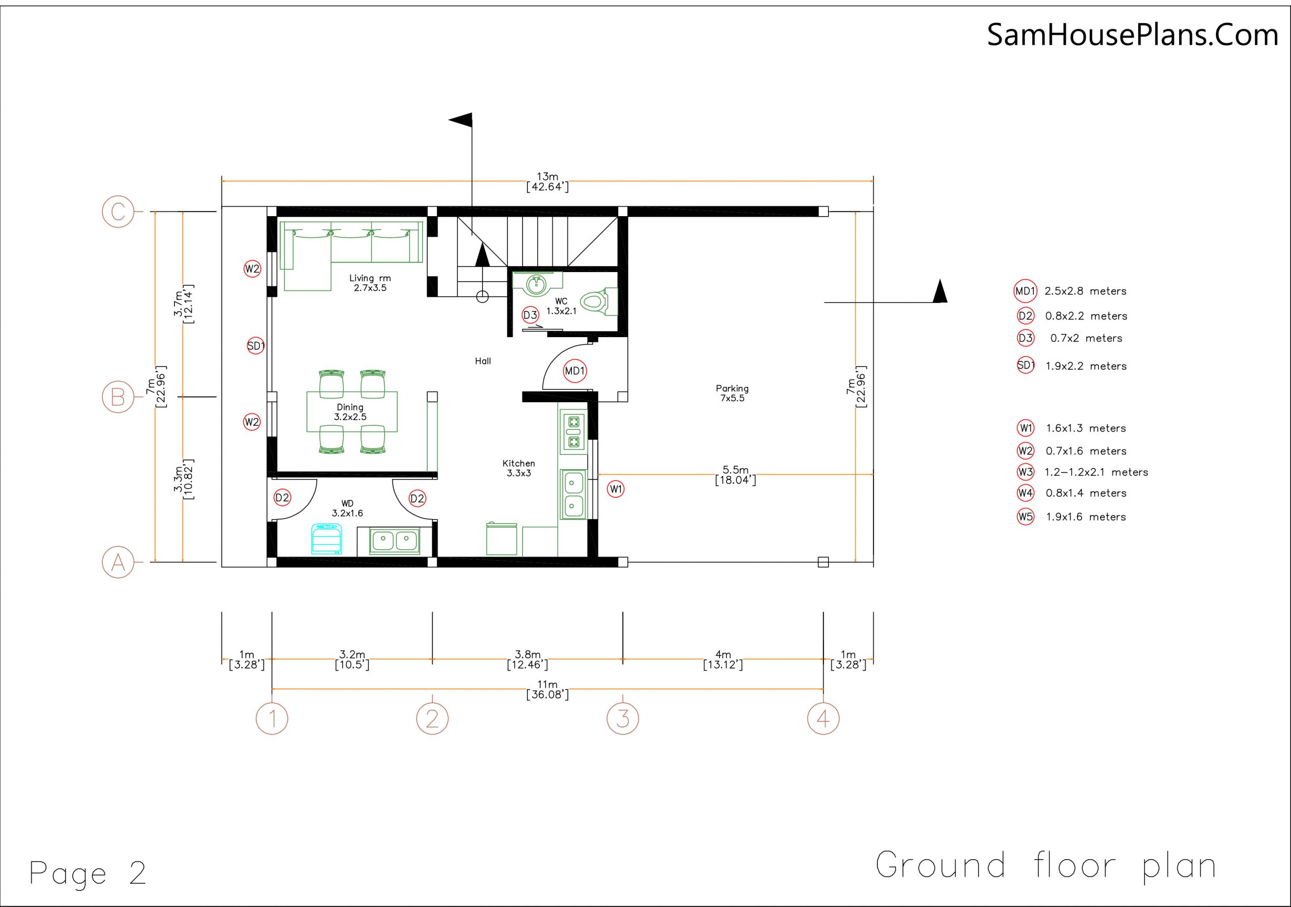 House Plans 7x13m Floor Plans Has: