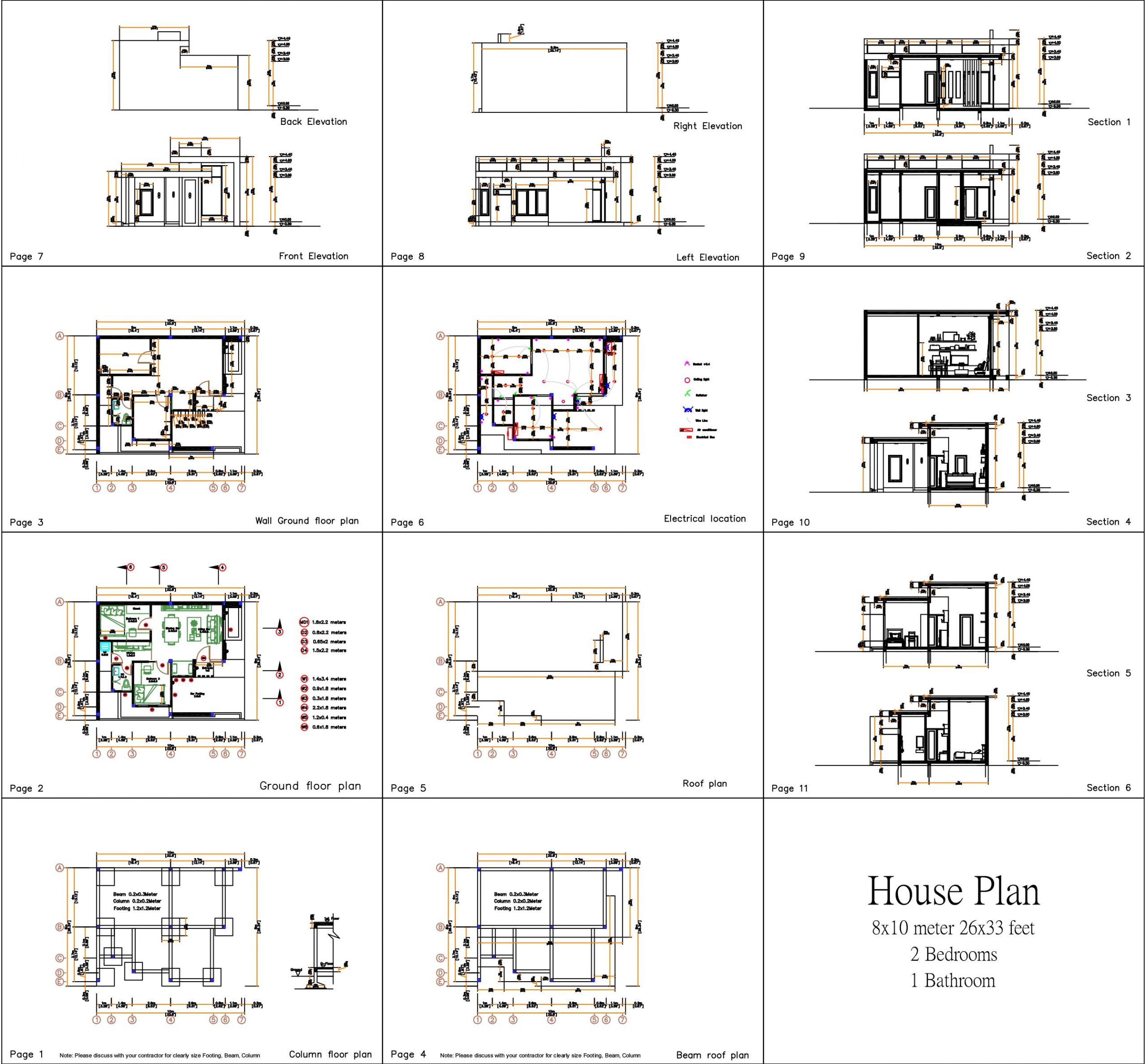House Plans 8×10 with 2 Bedrooms PDF Plan Terrace Roof full plan. This villa is modeling by SAM-ARCHITECT With One story level. It’s has 2 bedrooms 1 Bathroom.