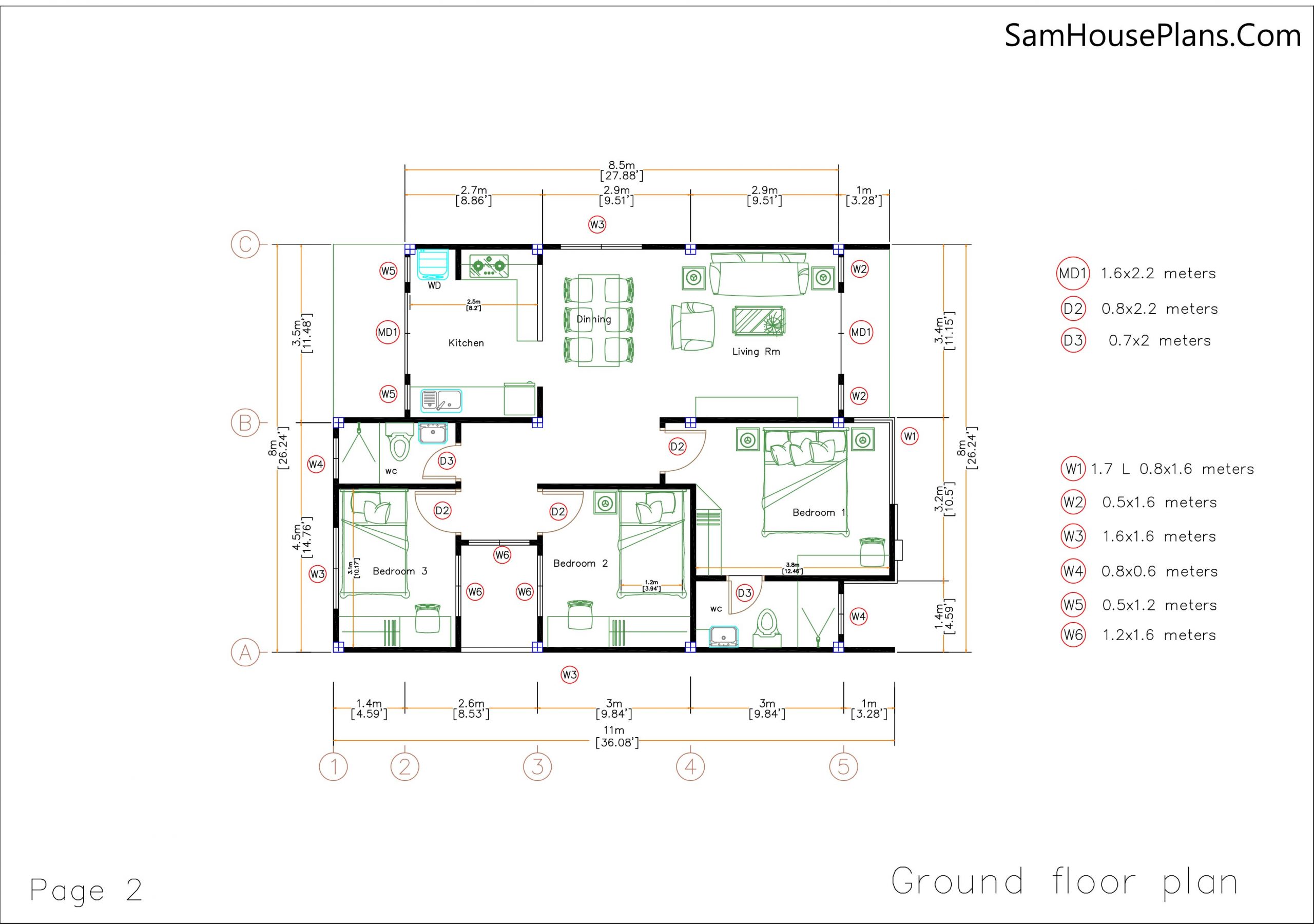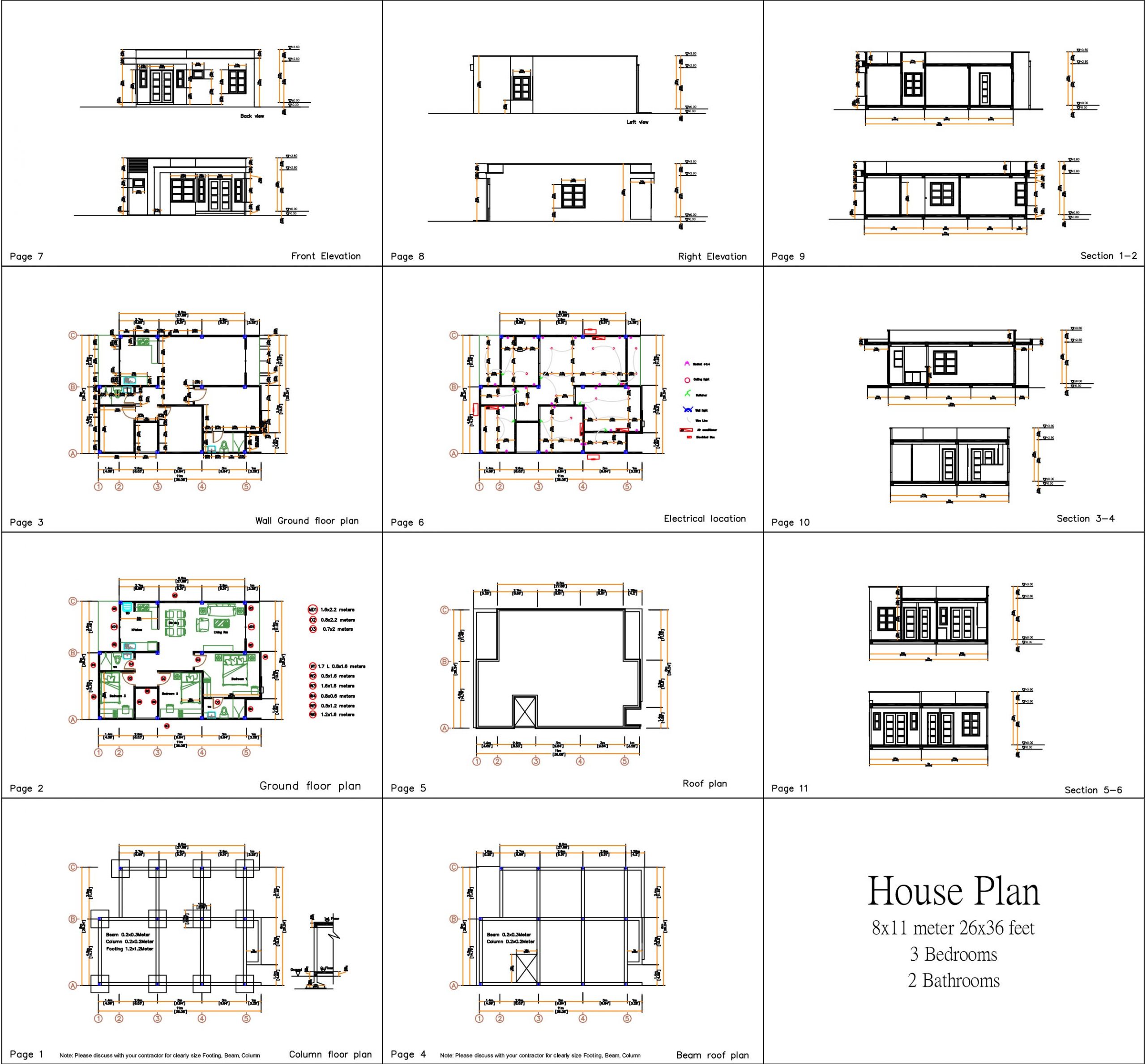 House Plans 8×11 with 3 bedrooms Full Plans PDF Plan Terrace Roof full plan. The House available in folder 2019. This villa is modeling by SAM-ARCHITECT With One story level. It’s has 3 bedrooms 3 Bathrooms.