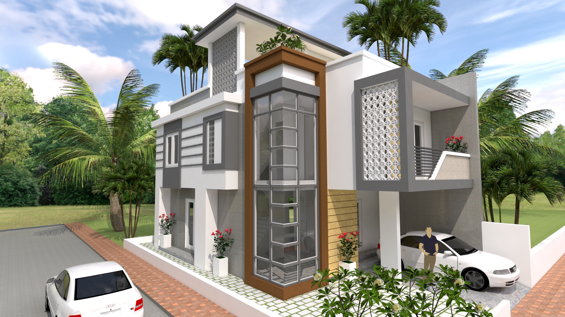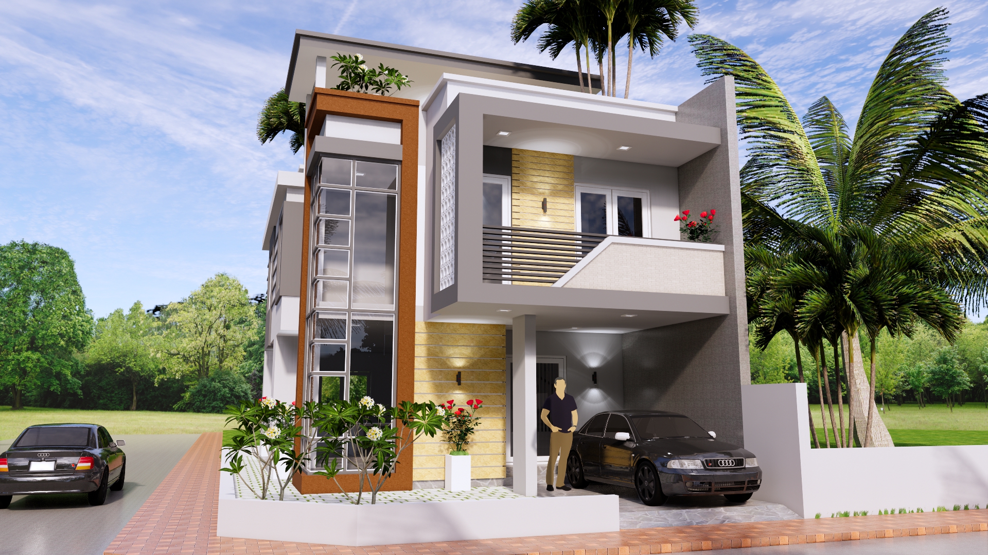 Similarly, to the roof border color we choose a bite dark and light color combination together with a big glass door and window to get the house look so beautiful and Modern house.