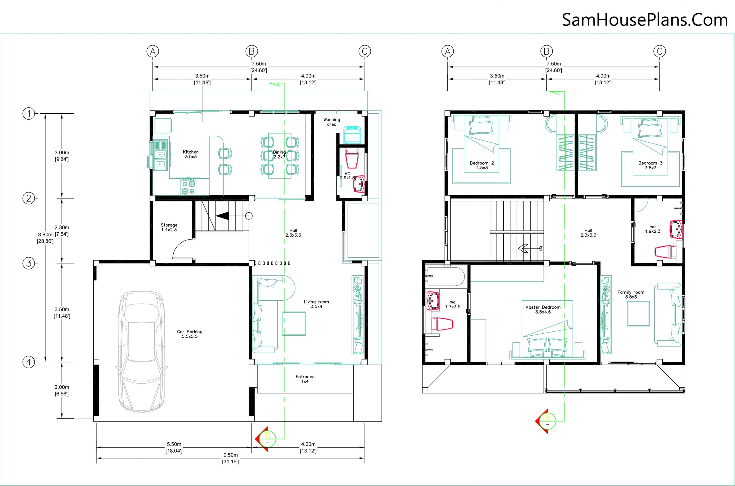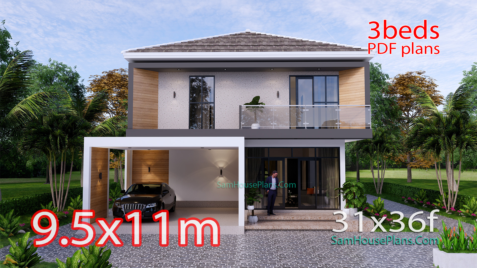 House Plans 9.5×11 Meter 3 Bedrooms Full PDF Plan 31X36 Feet. If you are looking for 3 bedrooms house for your small family this house is perfect for you.
