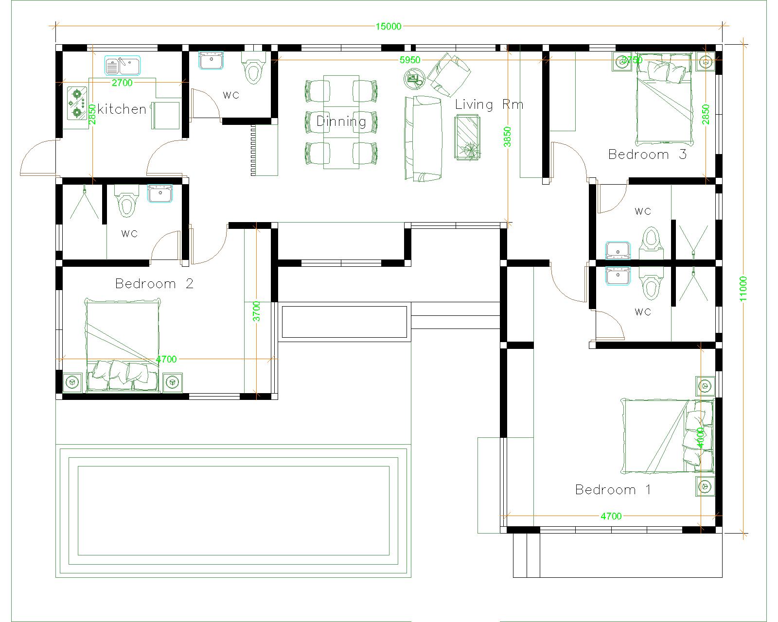 Firstly, Ground floor, car Parking is Out side of the house. A nice Terrace entrance in front of the house with small garden. When we are going from front door, a Living with dining table 3.85×6 meters is very perfect for this house it is nice and modern. Brightly Kitchen 2.7×2.9 meters, it is clean and beautiful. Multi Bathroom 1.5×1.7 meter with Washing machine. Bedroom 1 size is 4×4.7 meter with Bathroom 1.7×2.7 meter, Bedroom 2 size is 3.7×4.7 meter with Bathroom 1.7×2.7 meter, and Bedroom 3 size is 2.9×3.8 meter with Bathroom 1.7×2.7 meter.