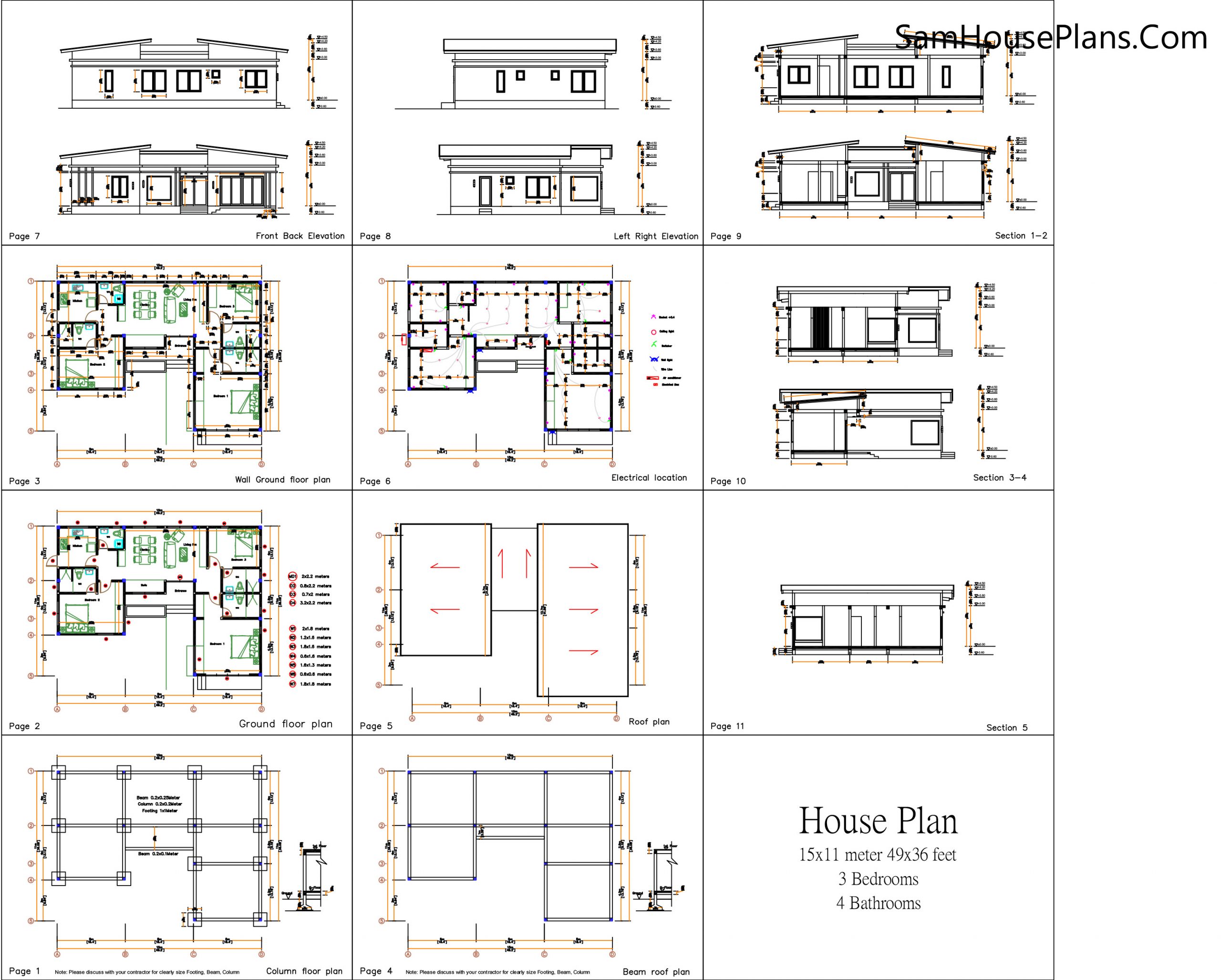 Building size: 49 feet wide, 36 feet deep. In Meters 15×11