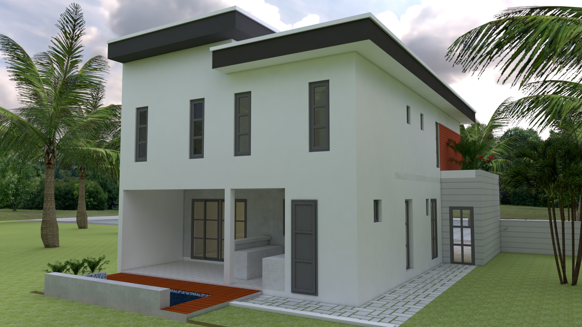 Finally, The Terrace roof type is made from cement concrete that cover above Gypsum board ceiling . It is make the house look simple and modern.