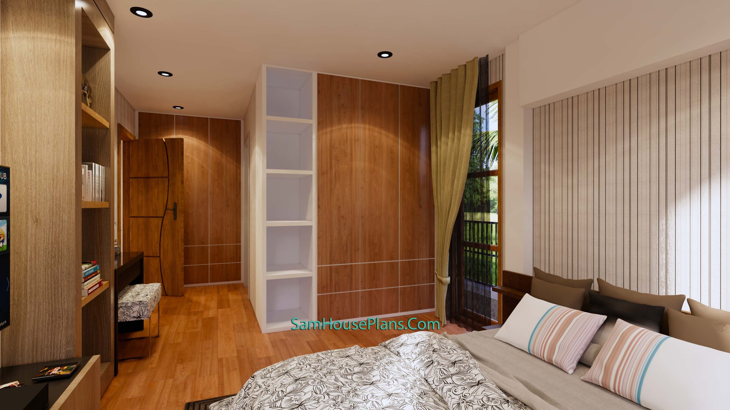 The Master Bedroom size is 7×3.5 meters, it have a big glass sliding door with a queen size bed, Makeup desk and 2 closets , attached with bathroom 2×2.5 meter. Bedroom 2 size 3.3×3.5 meter and Bedroom 3 size 3×3.5 meters. The back balcony 3.5×1 meter.