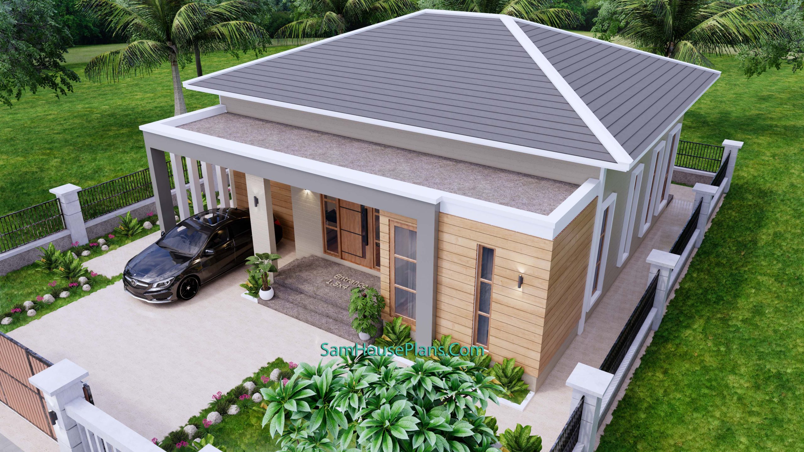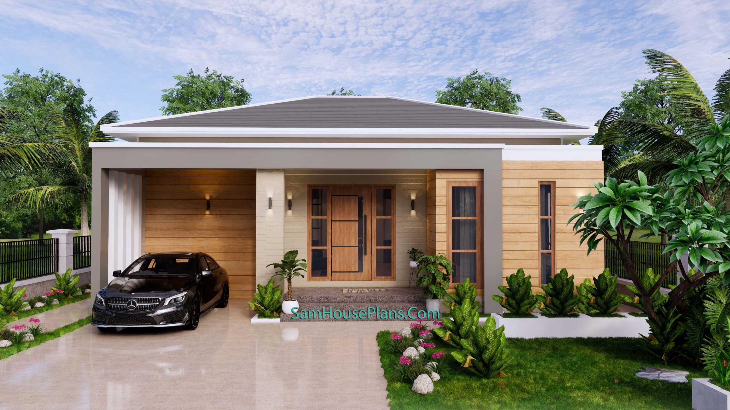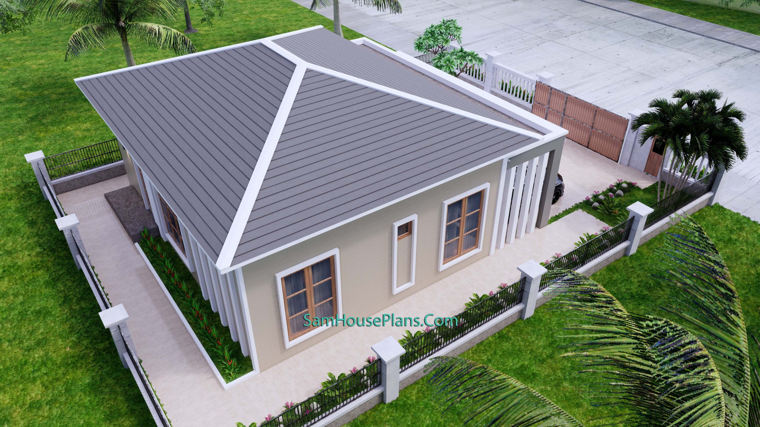 Finally, The Hip roof type is made from Cement tile that cover above Gypsum board ceiling . It is make the house look simple and modern.