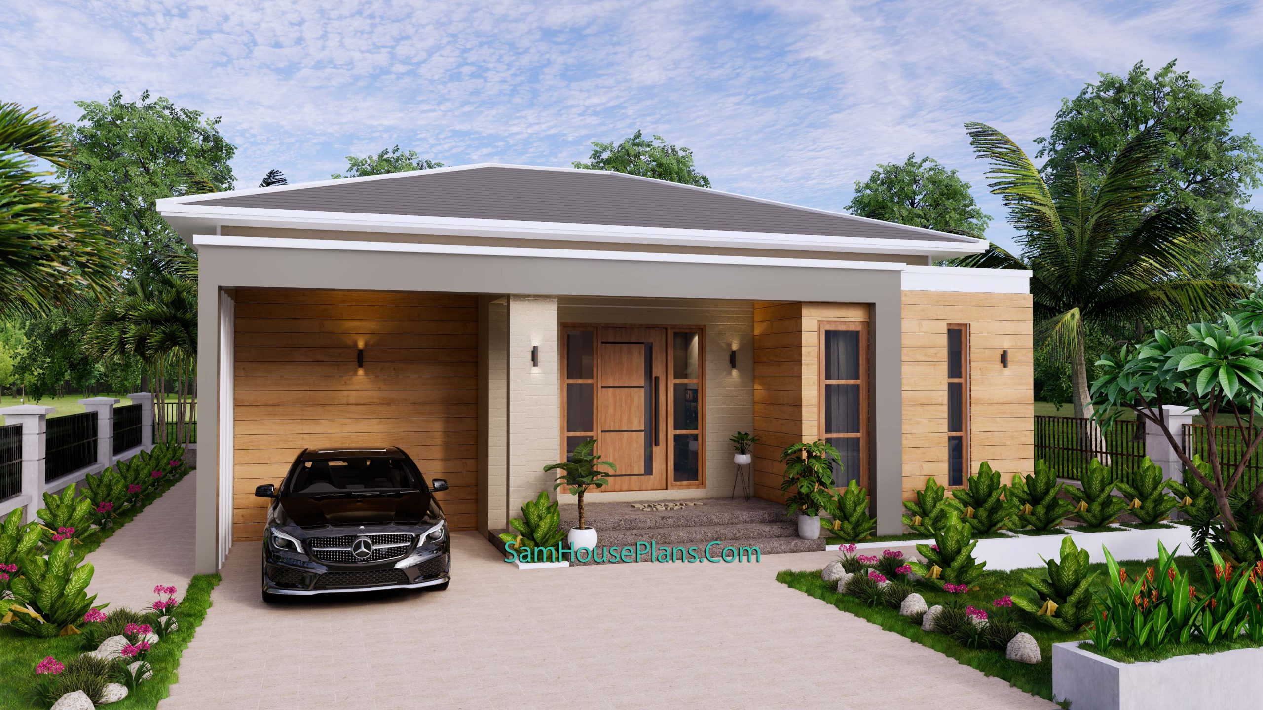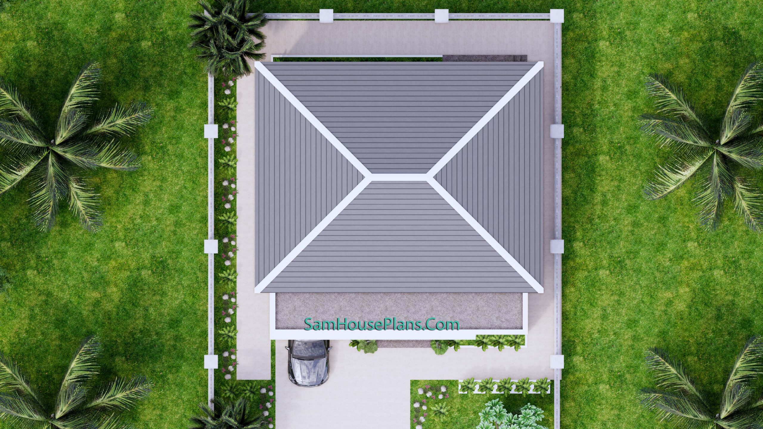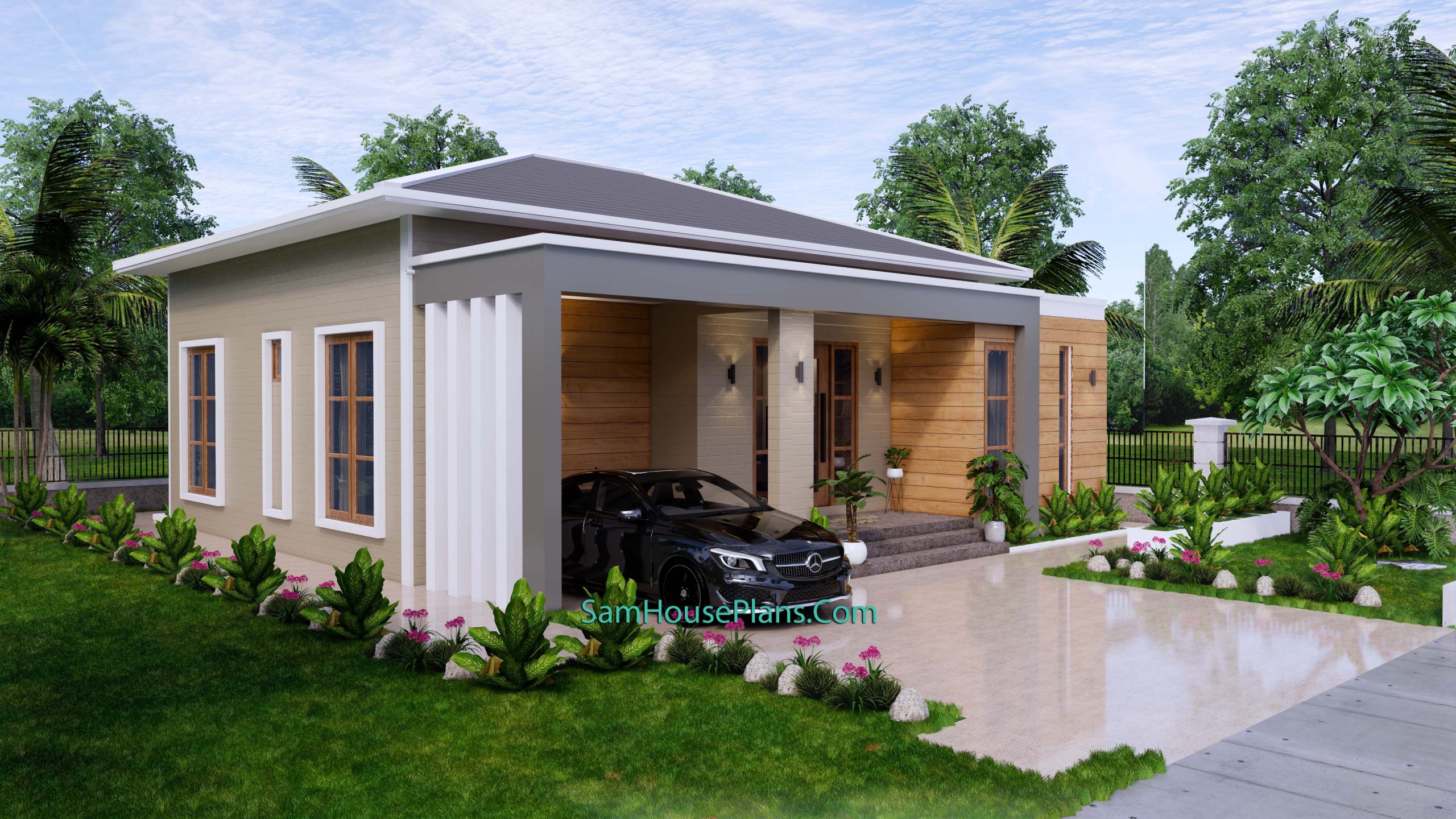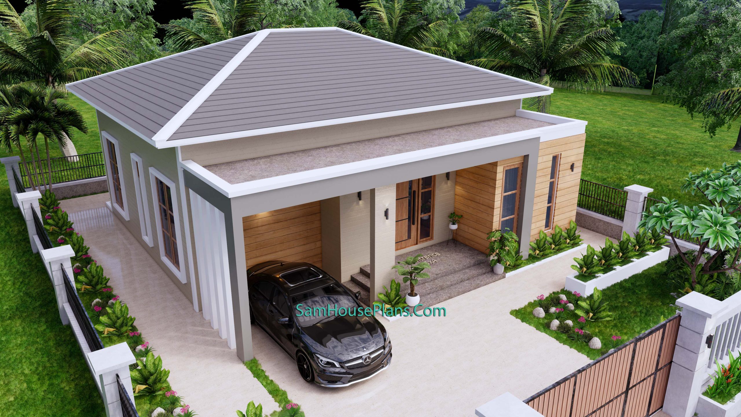 Finally, The Hip roof type is made from Cement tile that cover above Gypsum board ceiling . It is make the house look simple and modern.