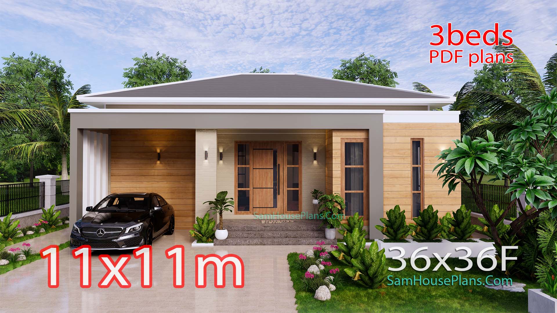Modern House Plan 11×11 Meter 36×36 Feet 3 Beds PDF Plan 121 sqm Full Plans. This villa is perfect for family that have three bedrooms. Est. Price around 25k-35k usd construction only.