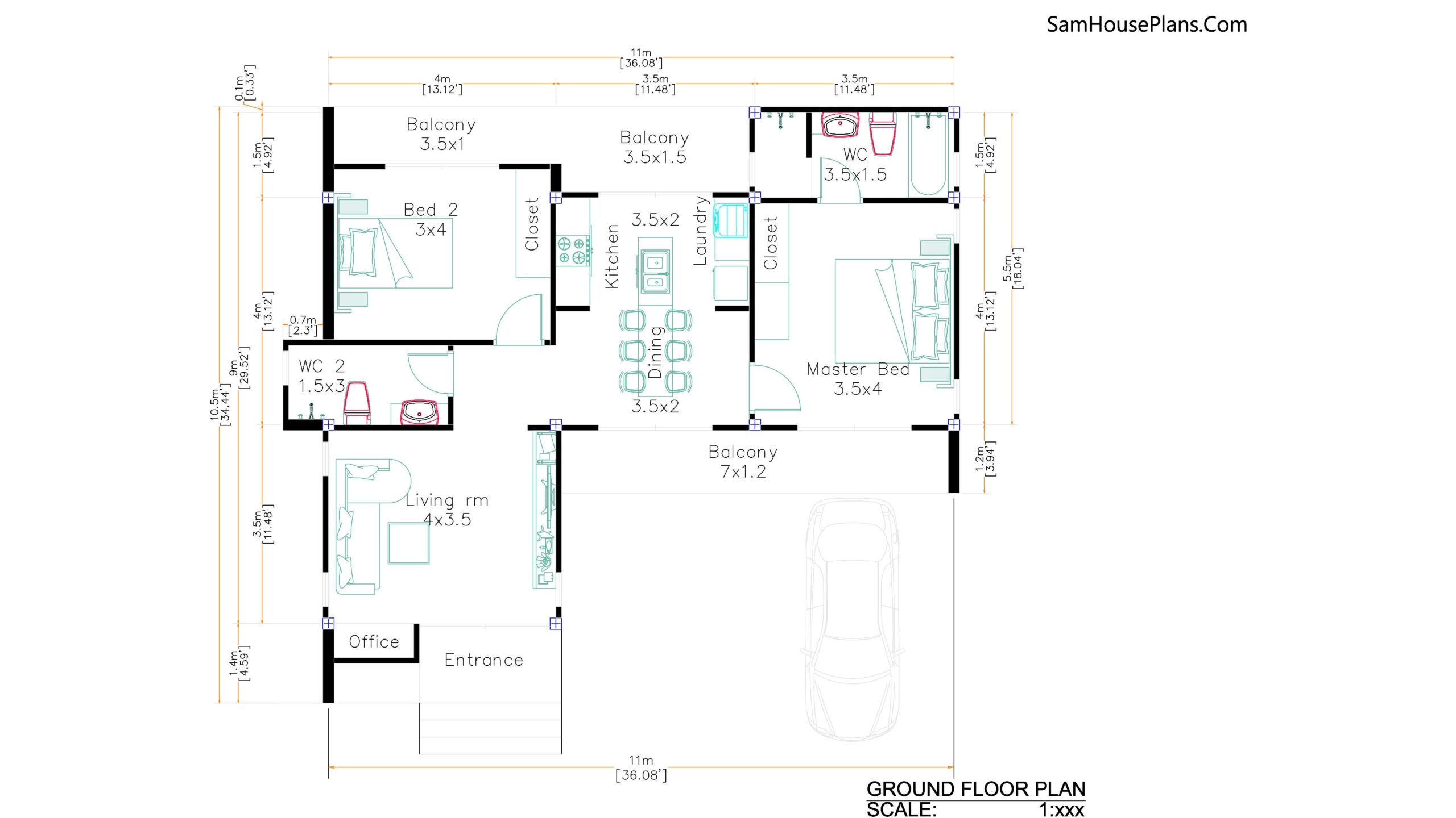 Modern House Plans 11×10.5 Floor Plans Has: