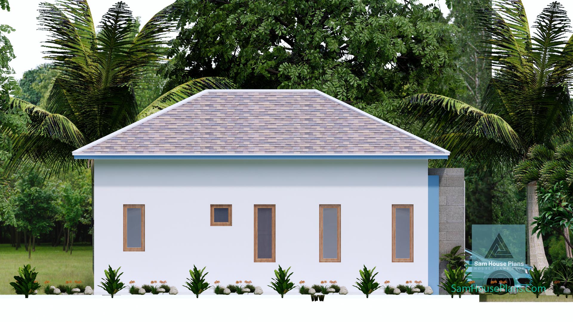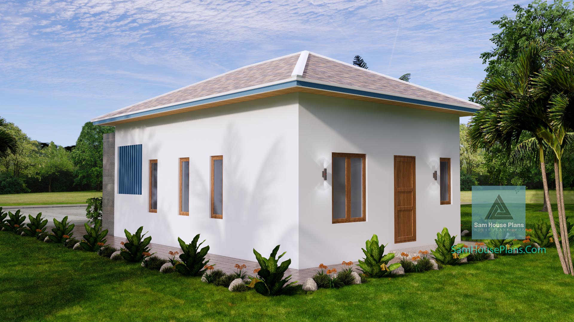 Finally, The Hip roof type is made from cement tiles or zine that cover above Gypsum board ceiling . It is make the house look simple and modern.