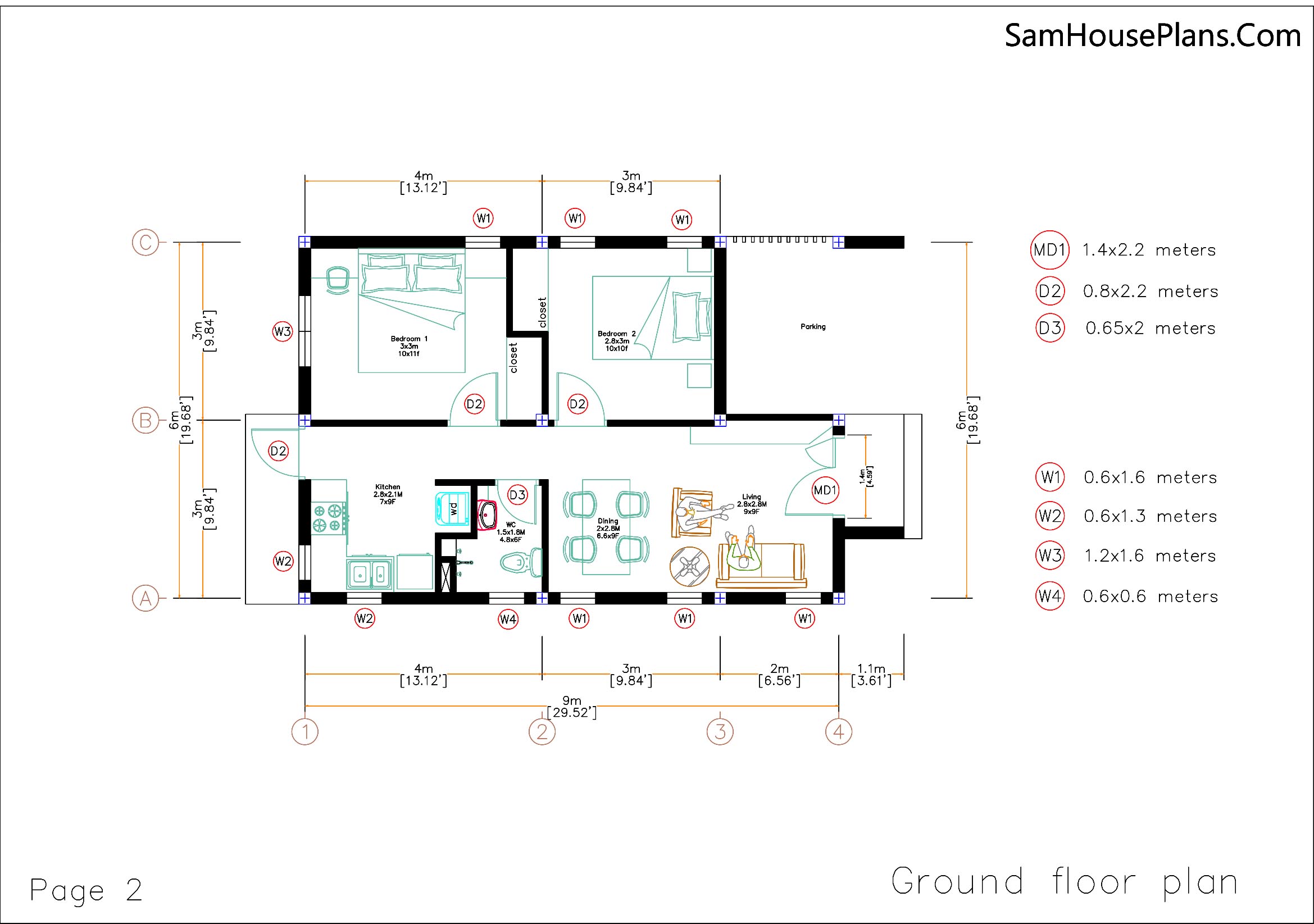 Small House Plans 5×7 Meters 2 Bedrooms