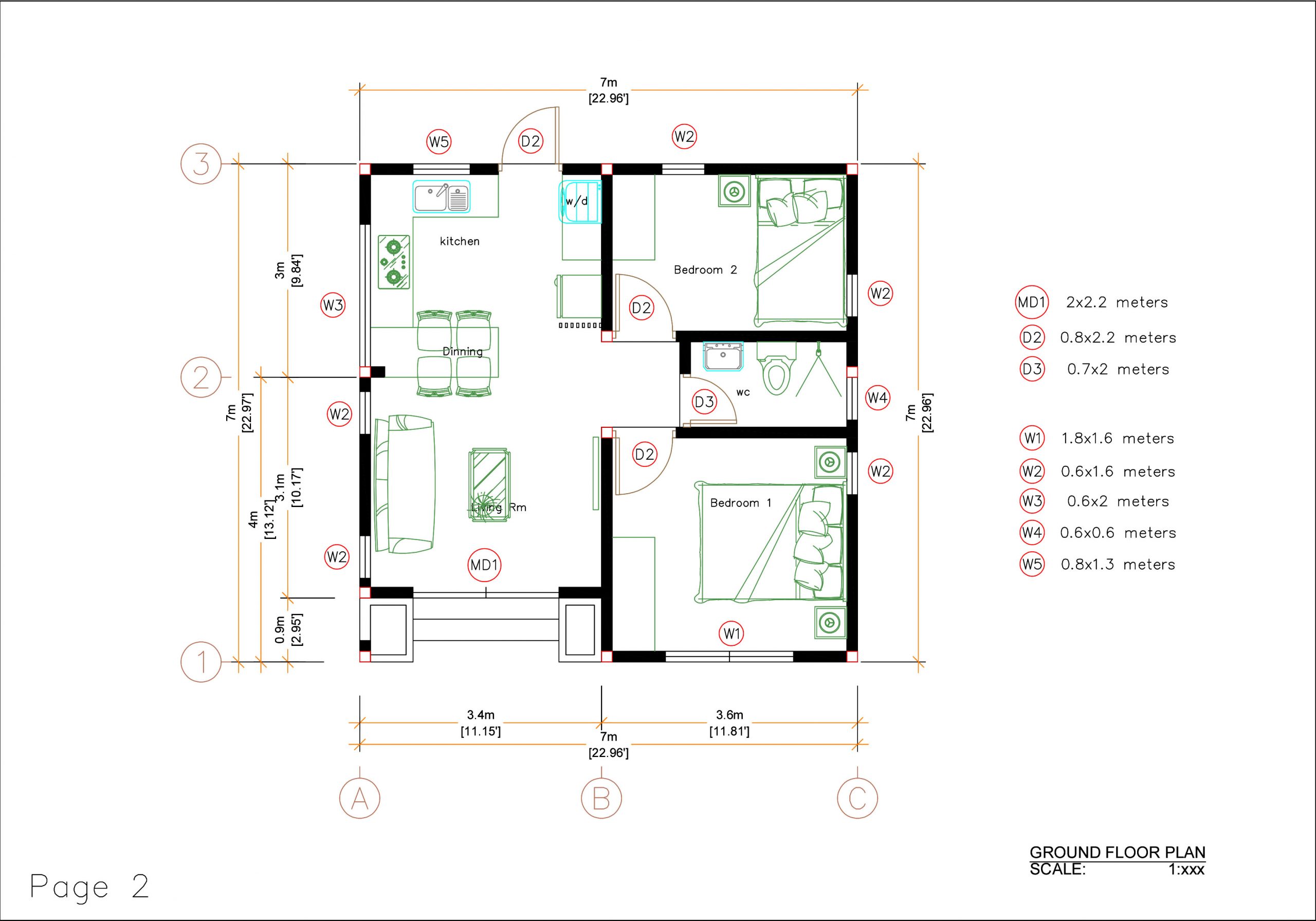 Small house design 7×7 Meters Ground Floor Plans Has: