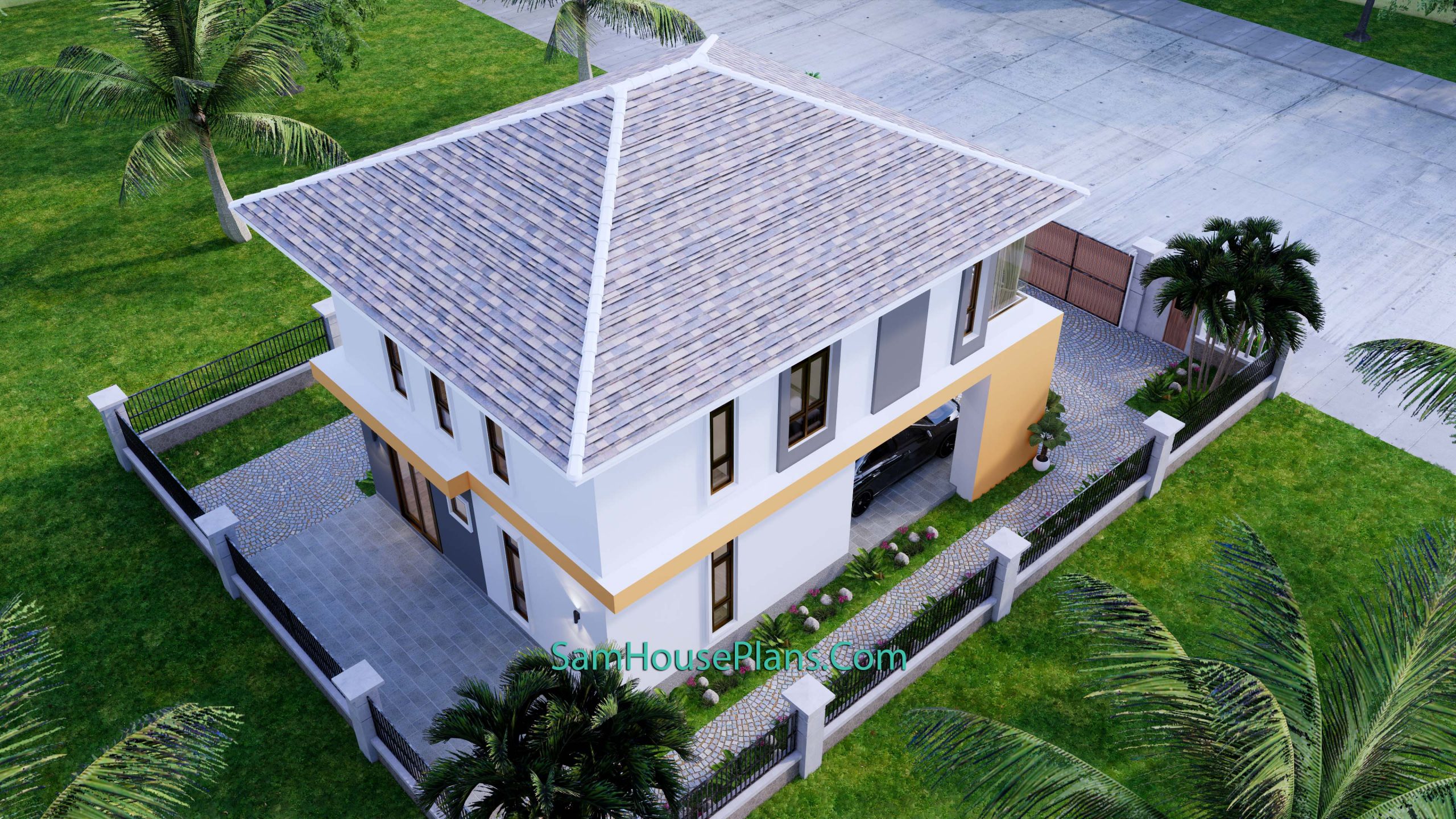 Roof Type: Hip roof (Cement tile, Concrete cement or other supported type)