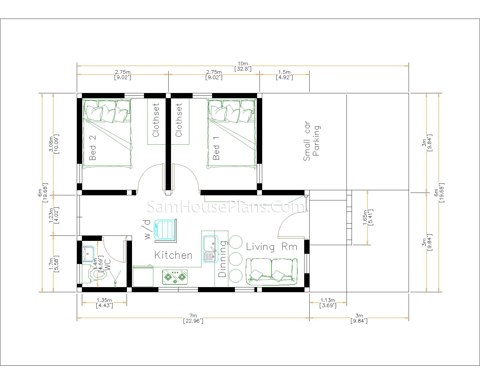 Small House Plans 6×7 Meter 20x23Feet Gable Roof