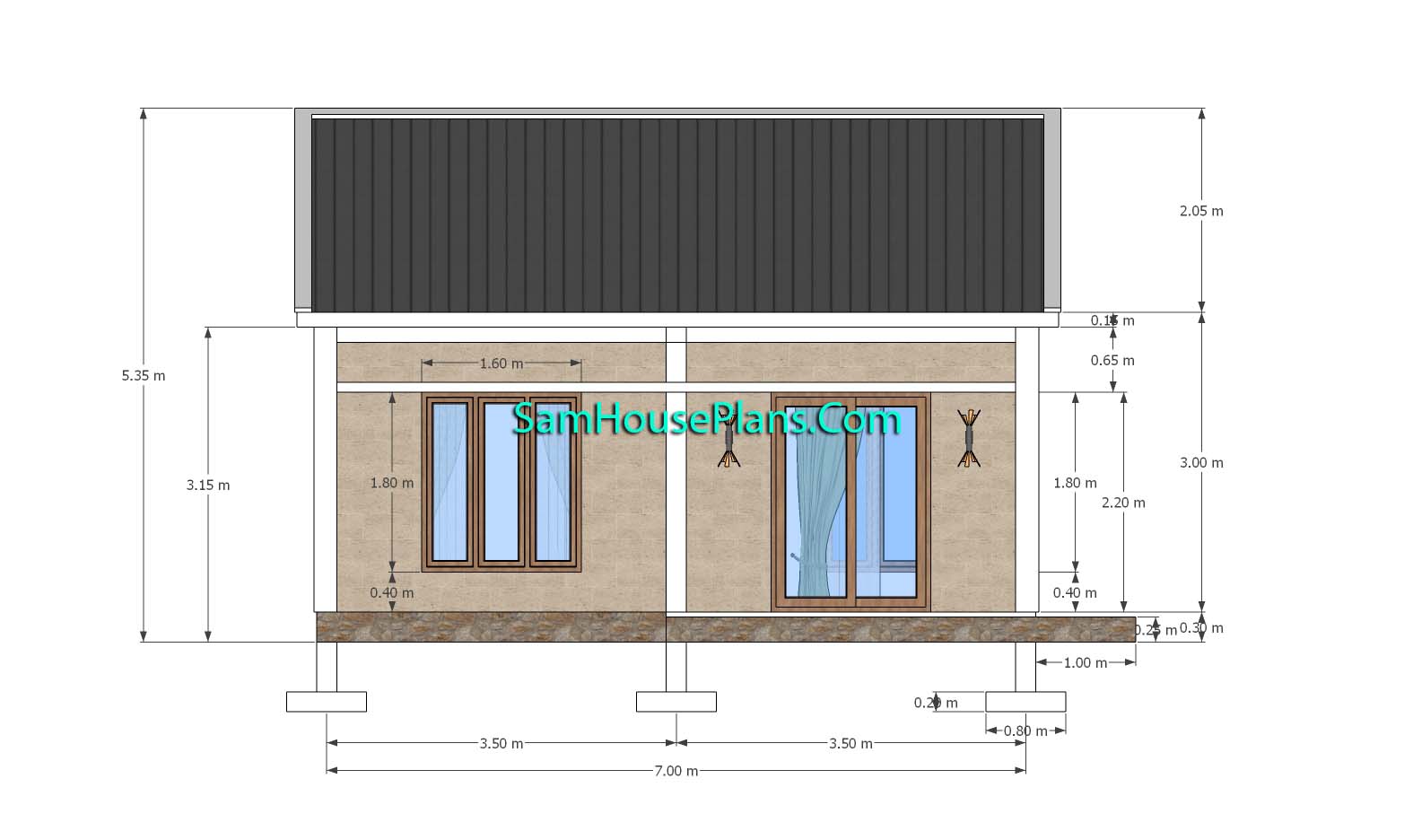 Small House Plans 5×7 Meters 2 Bedrooms