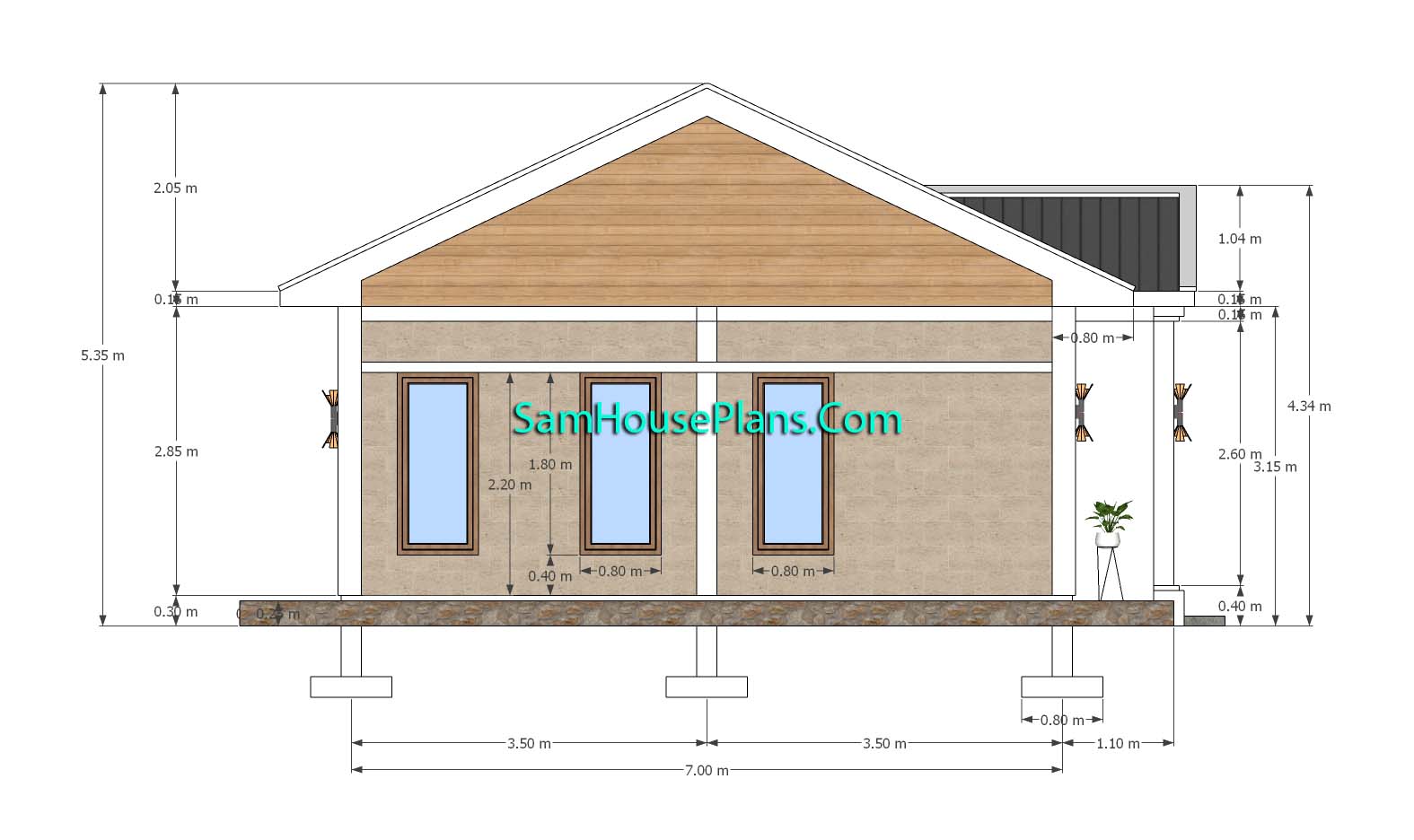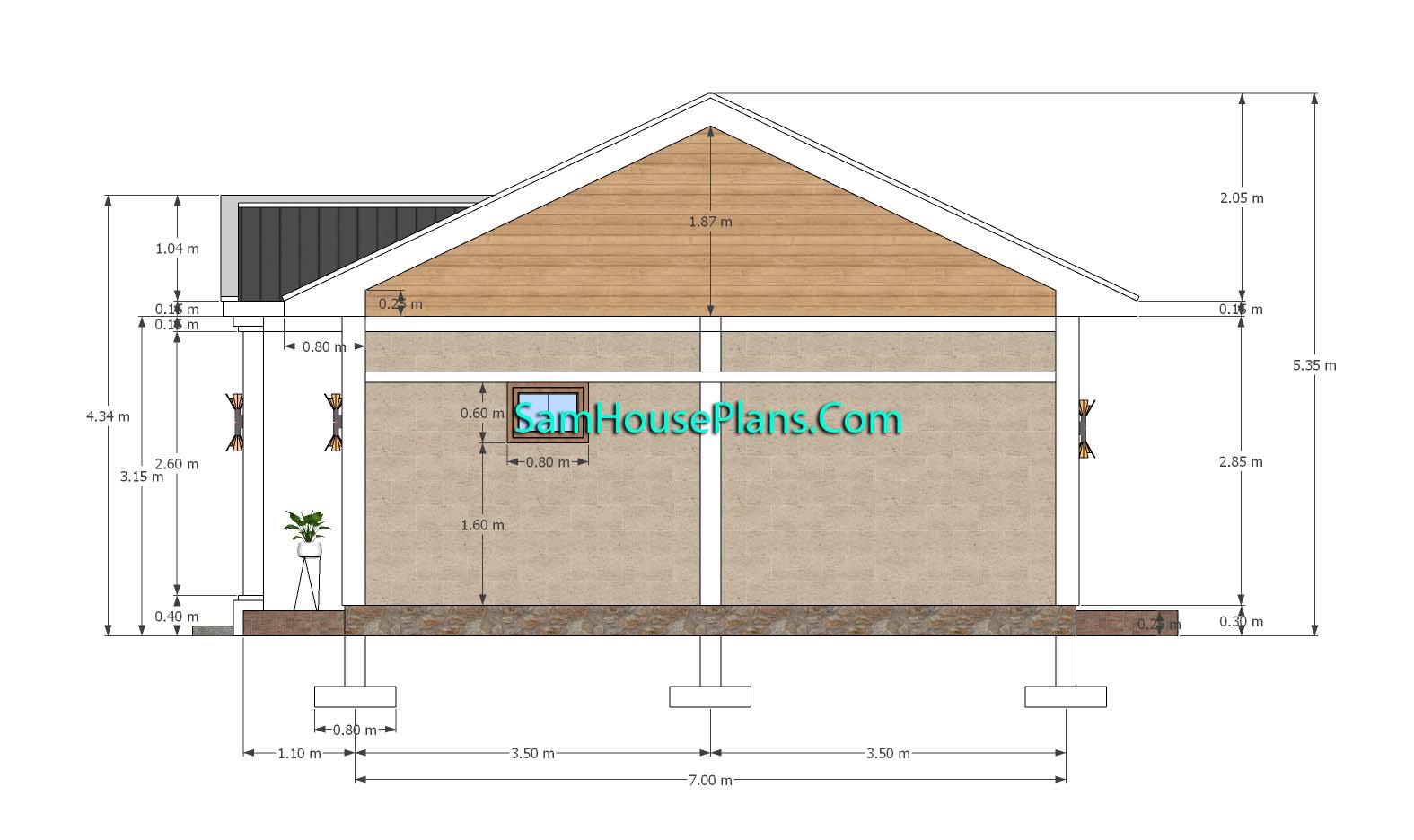 Small House Design 7×7 Meter 23×23 Feet Gable Roof