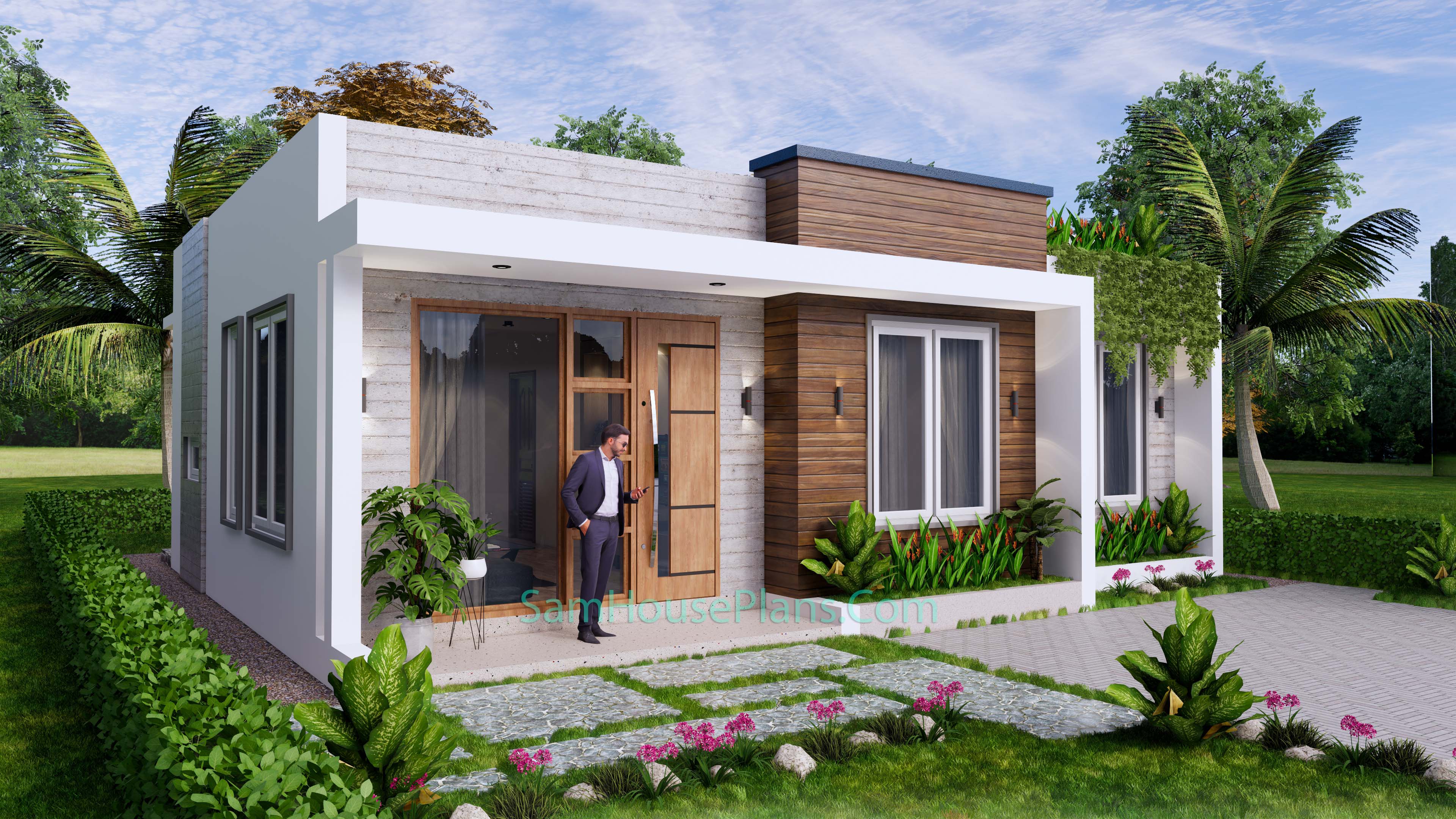 Small-House-Design-Plan-10x8-Meter-2-Bedrooms-80Sqm-Front-3D-3-416x234.jpg